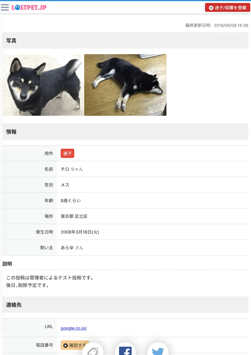 ペットと飼い主が再会できますように。迷子ペットのデータベース(LOSTPET.JP)は迷子ペット問題解決のための総合サイトです。