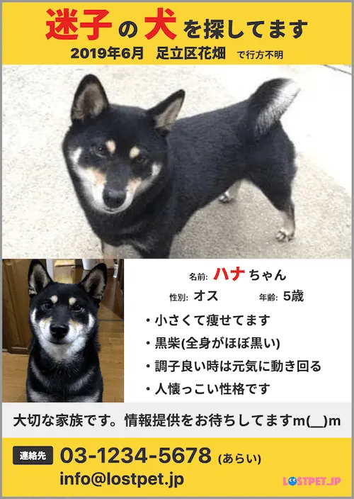 迷子になったら、早めのポスティングが重要。登録などの煩わしい作業はなしに、まずはポスターを作って下さい。