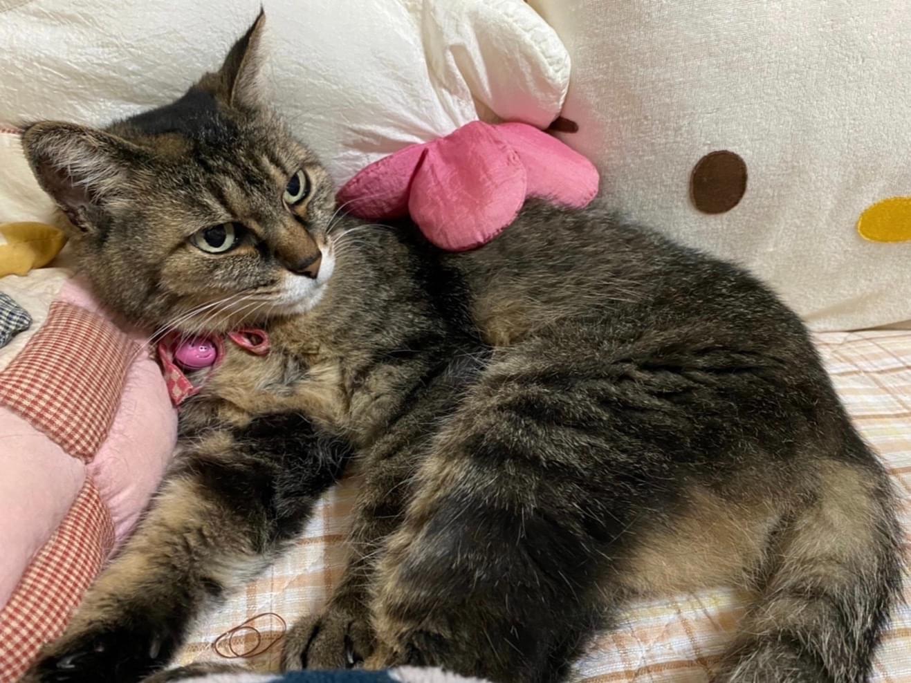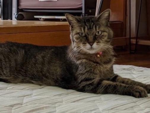 背中に黒多めの黄色みあるキジトラ猫を探しています。