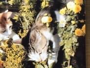 ・顔はキジ、サバのハチワレ、鼻に模様あり、眉間が白い