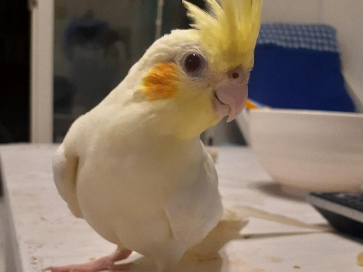 種類は白に黄色い王冠ホホがオレンジのルチノーです。