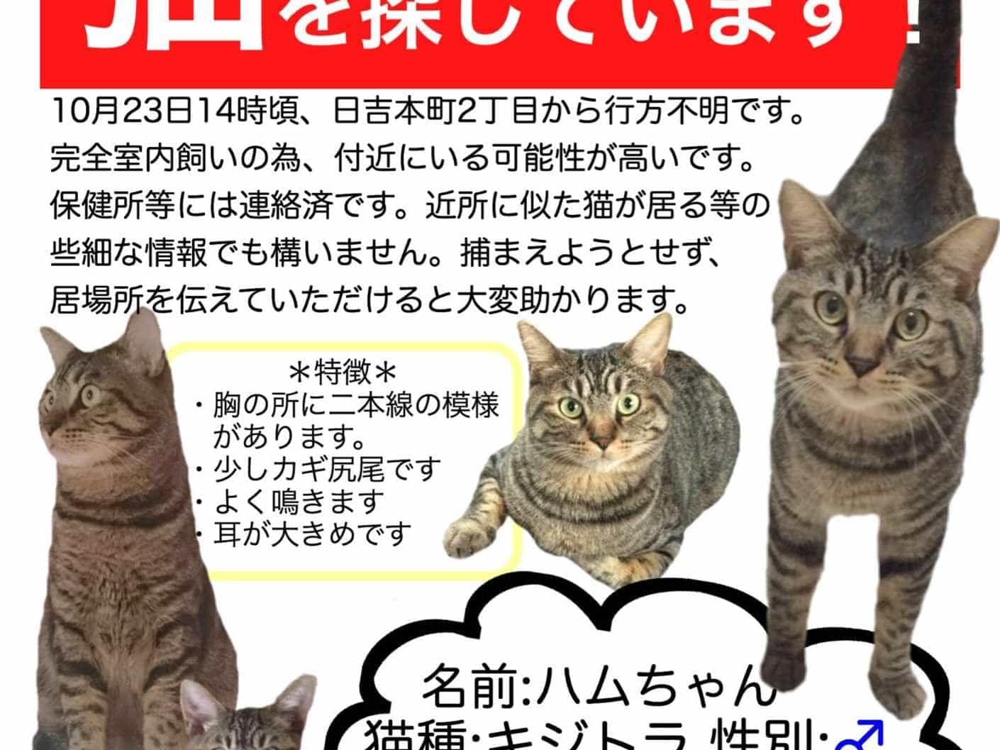 2018年10月23日、神奈川県 横浜市港北区日吉本町で猫が迷子になりました。