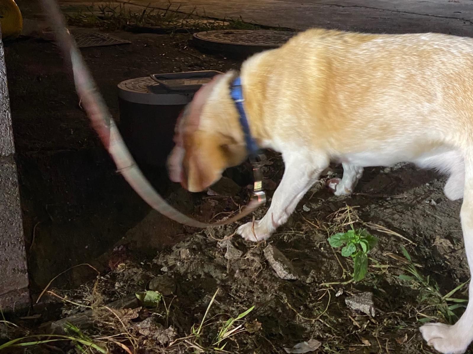 散歩中にはぐれたと思われるビーグル犬ちゃんを発見し、東金警察署(0475 54 0110)に保護されました。青の首輪、赤茶のリードです。