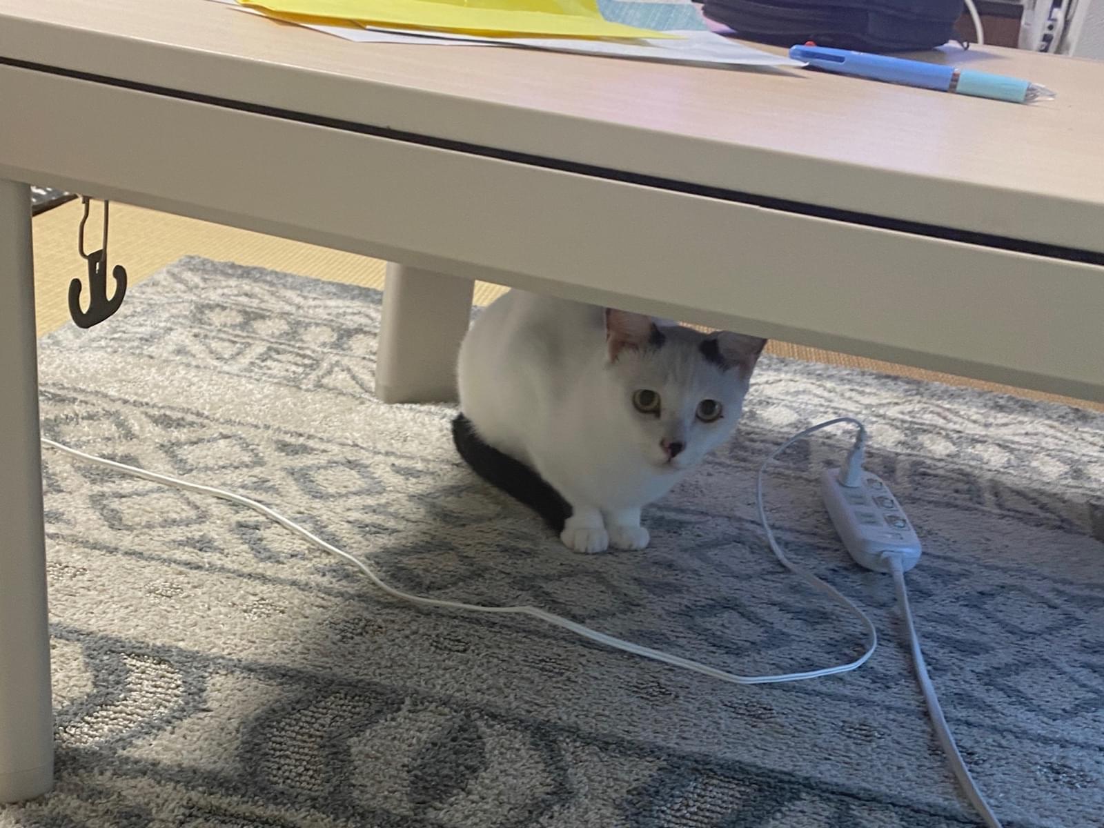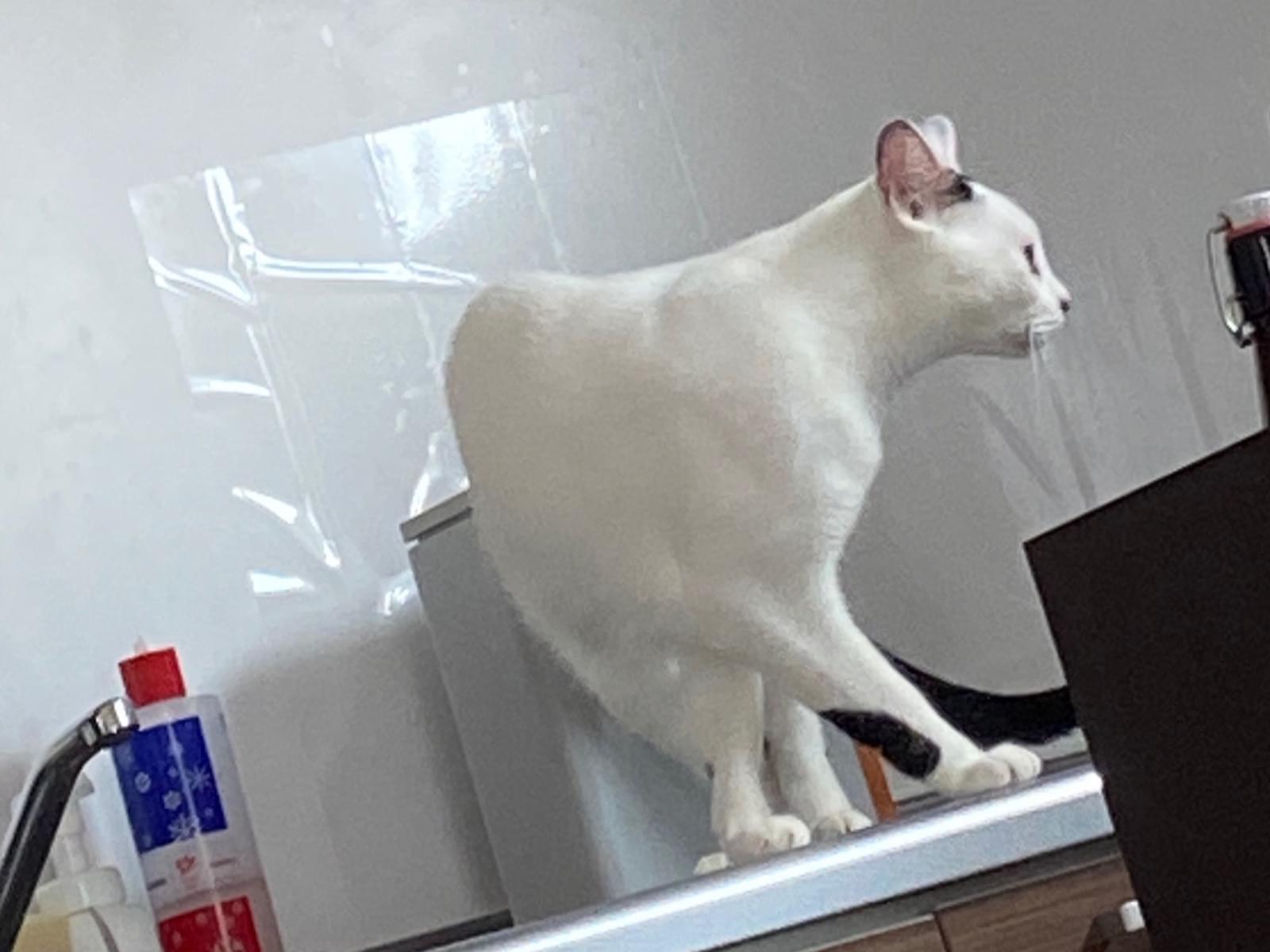 柄はほぼ白ですが、耳の付け根、肘、しっぽなど一部黒いです。
