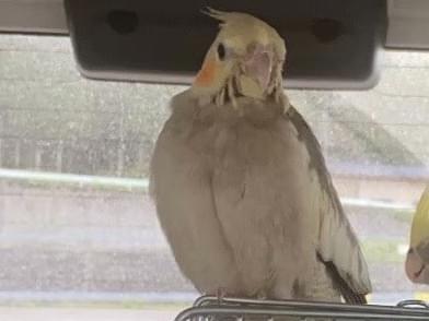 性格は臆病者で怖がりですが元々ブリーダーさんの元で外で育っていたためあまり外に対する恐怖心はないかもしれません。人見知りです。体はまだ小さいですががたいがいいです。ほっぺが濃く冠羽と顔まわりが黄色のが特徴でノーマルと似ています。
