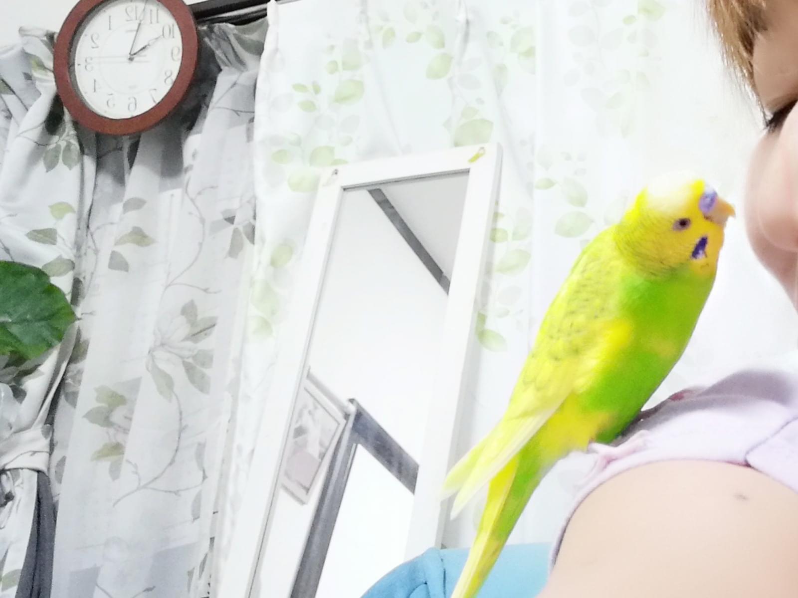 9月29日 朝9時 自らカゴをあけて出てしまいました。名前はオリちゃんでよくおしゃべりします。家もほぼ放し飼いにしていたので飛ぶ力がついています。普段ずっと肩か大腿の上にいます。オリちゃん、オリちゃん、ヒロちゃん、人参食べた?こんにちは。美味しい。が言えます。