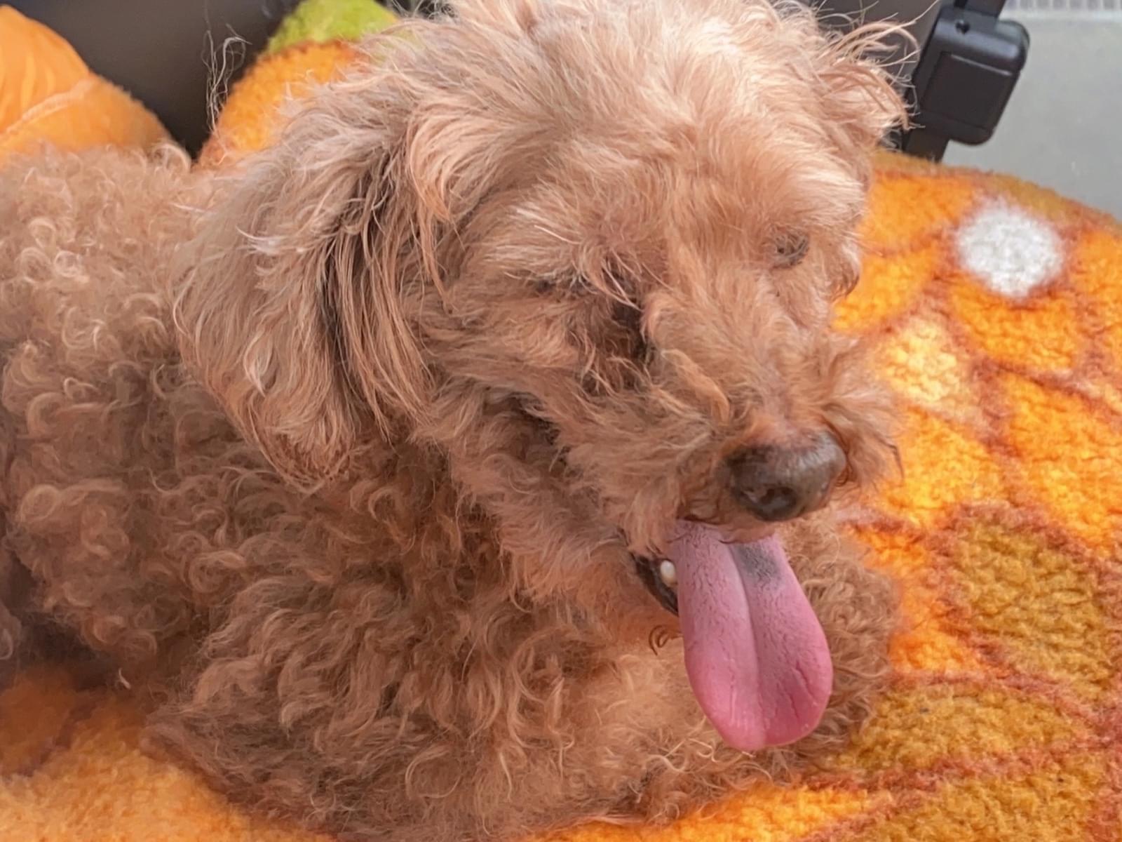 首輪なし、体長役40㎝、茶色、舌に黒っぽいシミ