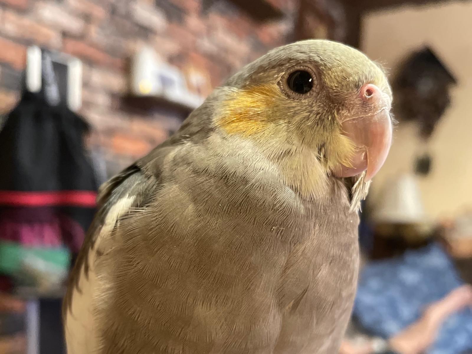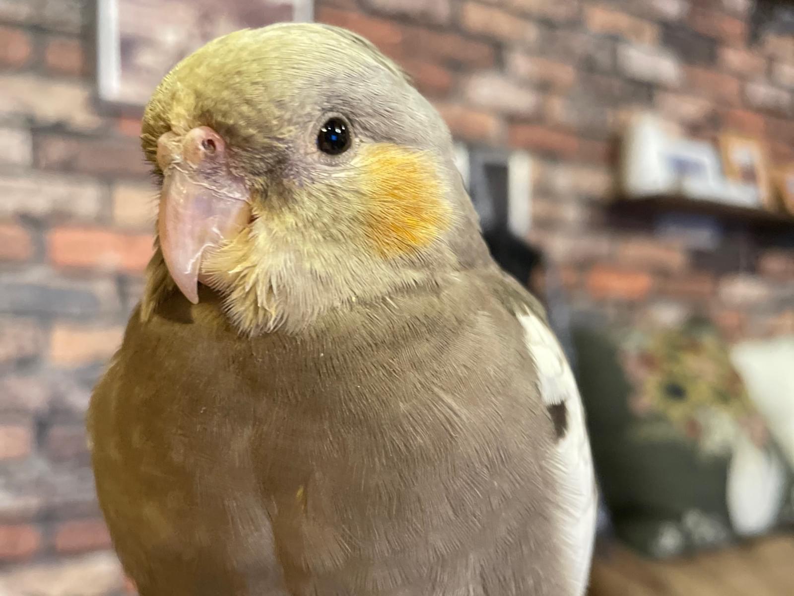幼鳥(6ヶ月)のため、まだ顔がはっきりと黄色ではないですが、添付した写真の時より鼻を中心に黄色が濃くまだらになっています。