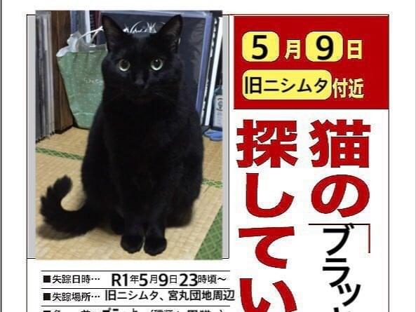 旧ニシムタ跡地付近で大きめの黒猫を探してます