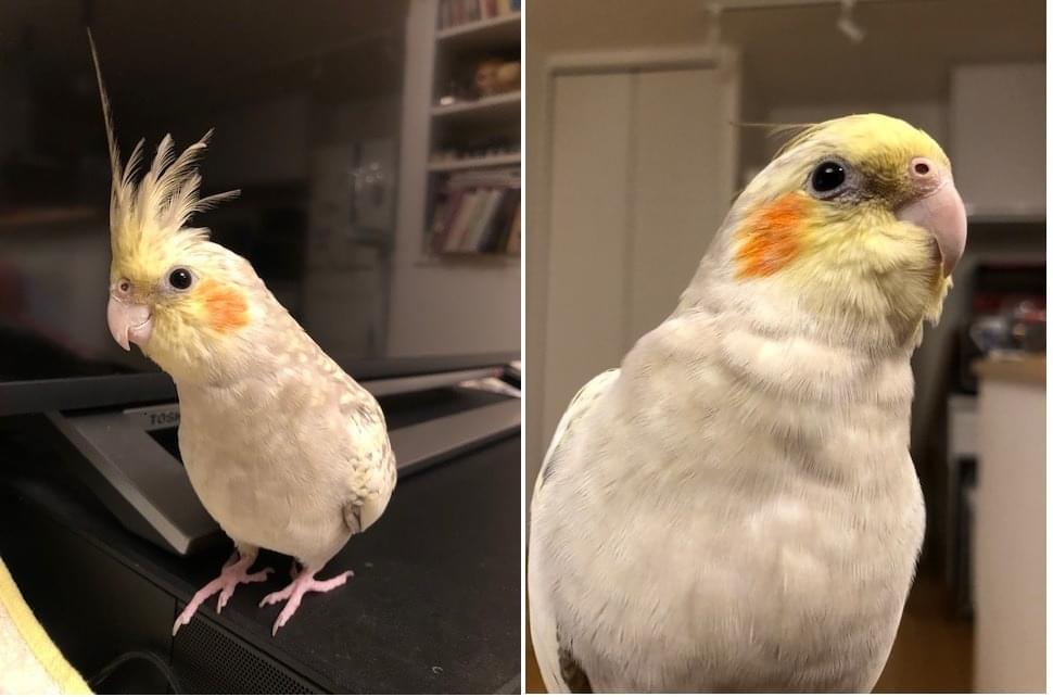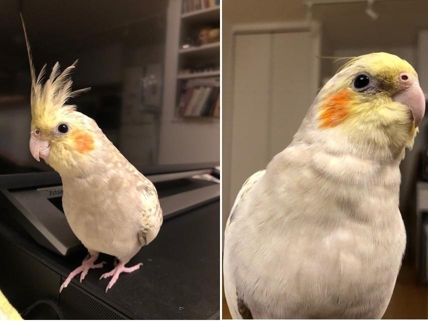 冠羽が1本だけ他の羽より長い黄色いオカメインコを探しています