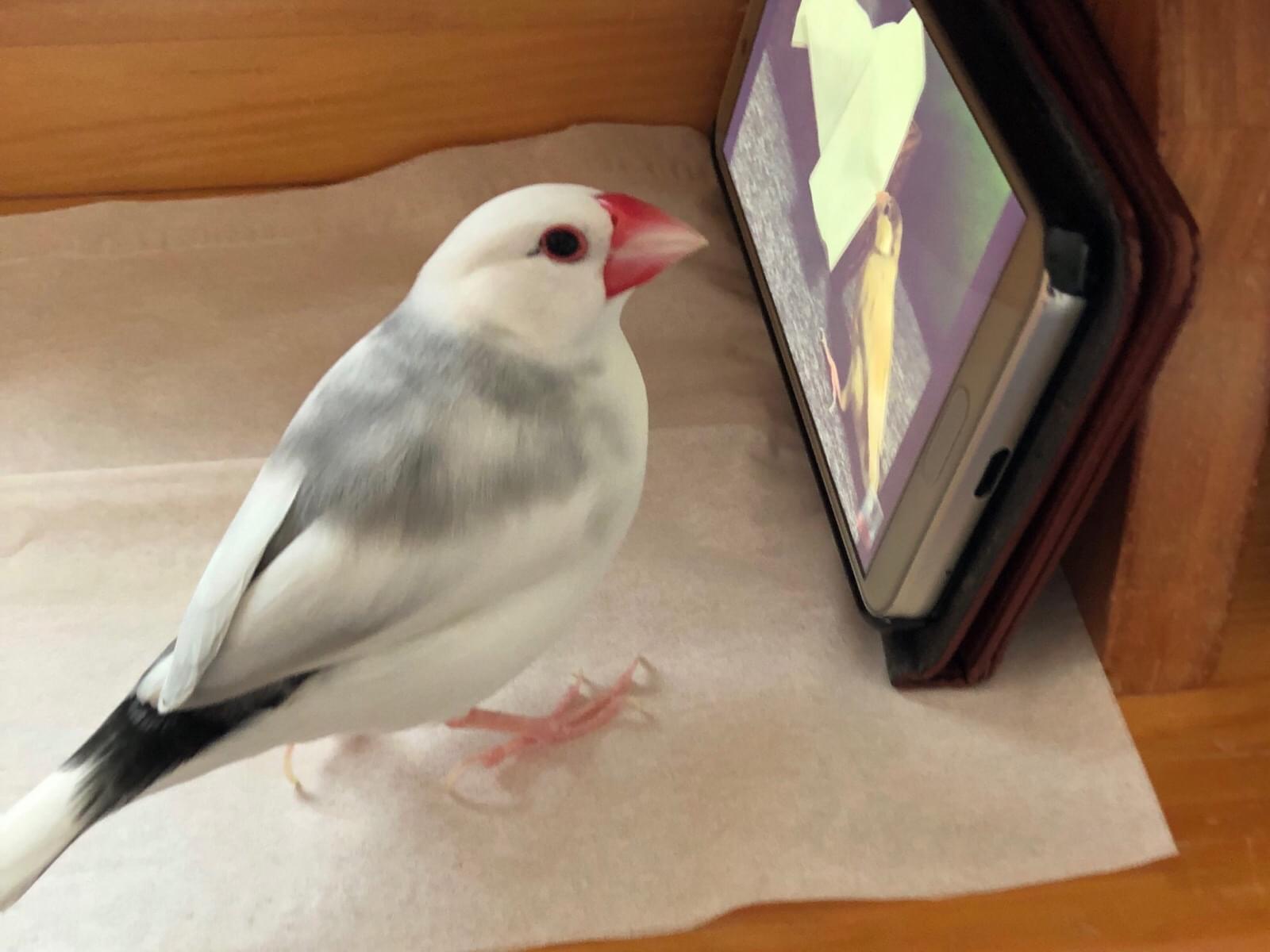 白文鳥探してます。背中がグレーで頭の後ろに黒くて丸いブチがあります