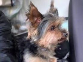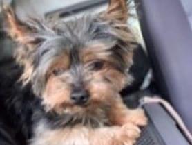 青い首輪を着けた小さいヨークシャーテリア犬を探してます