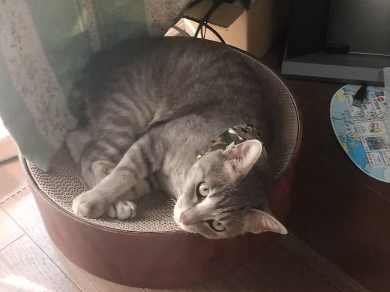 短め鍵しっぽでグレー縞模様のオス猫を探しています