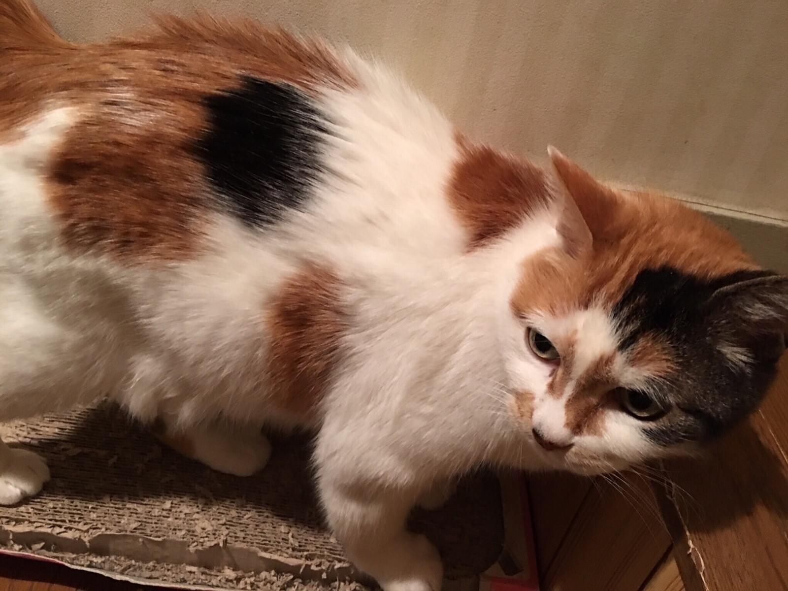 とっても、穏やかな性格のキレイな毛並みの三毛猫さんです。