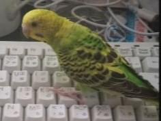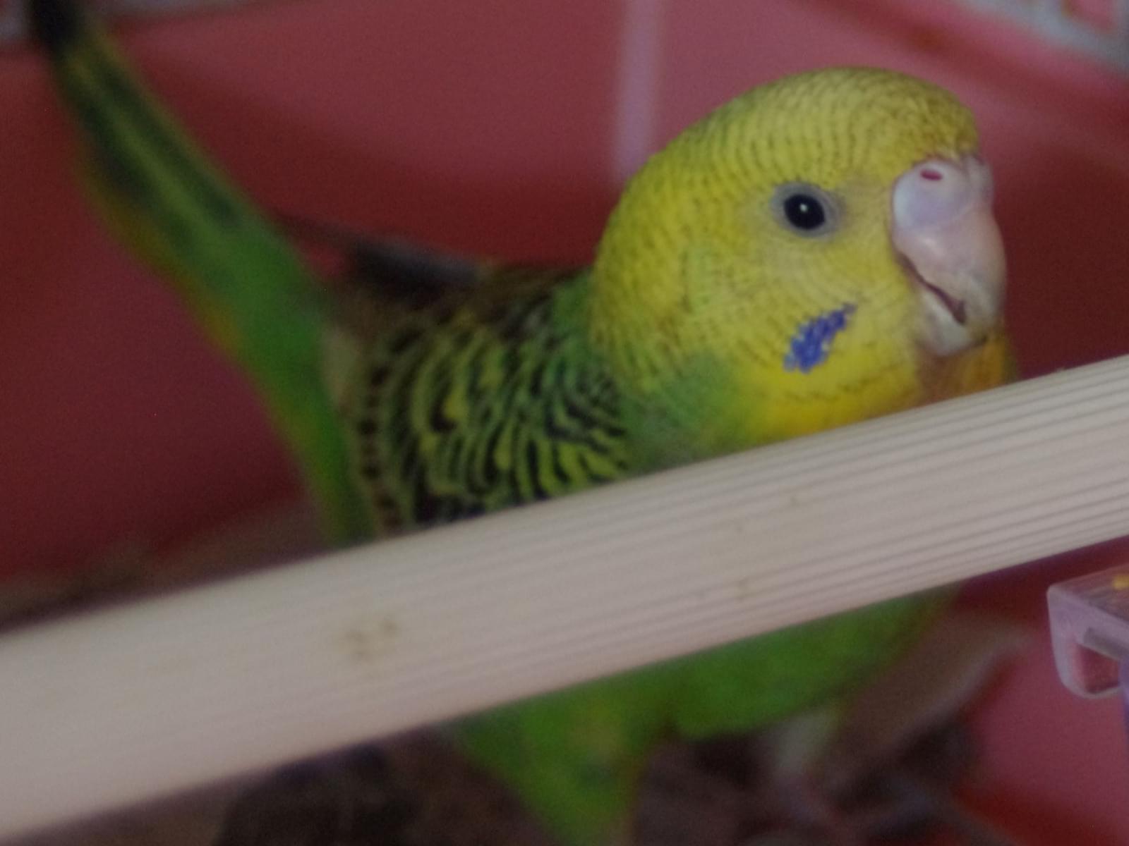 頭が黄色で胴体が黄緑で黒模様のインコです
