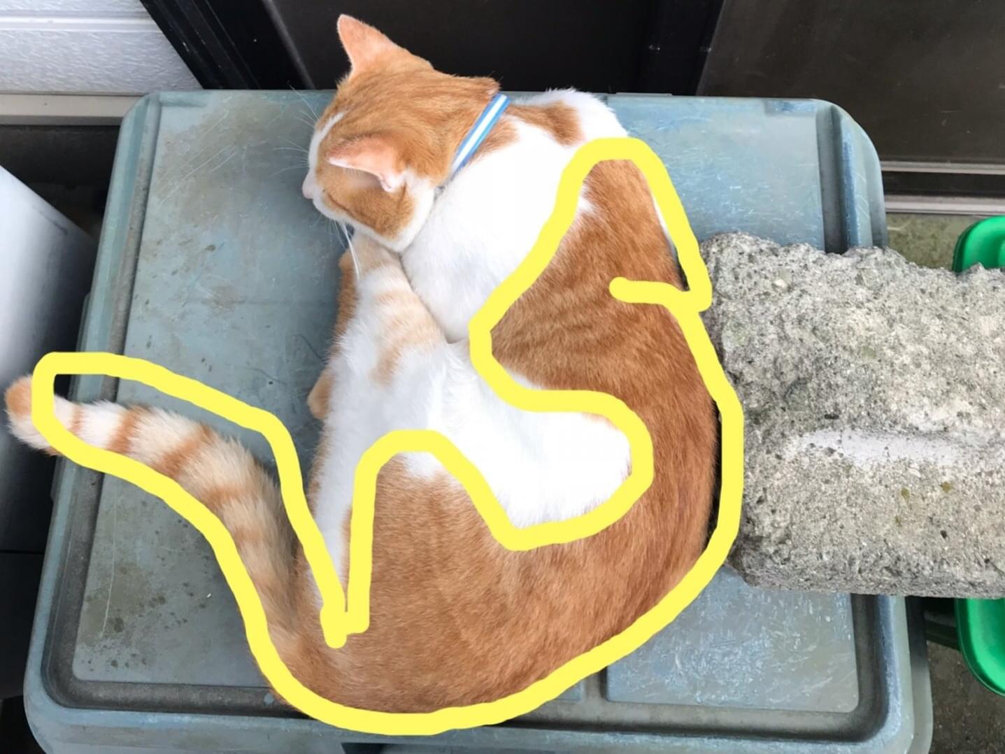 ・茶白の毛色(後ろ姿が犬が座ってる感じの模様)