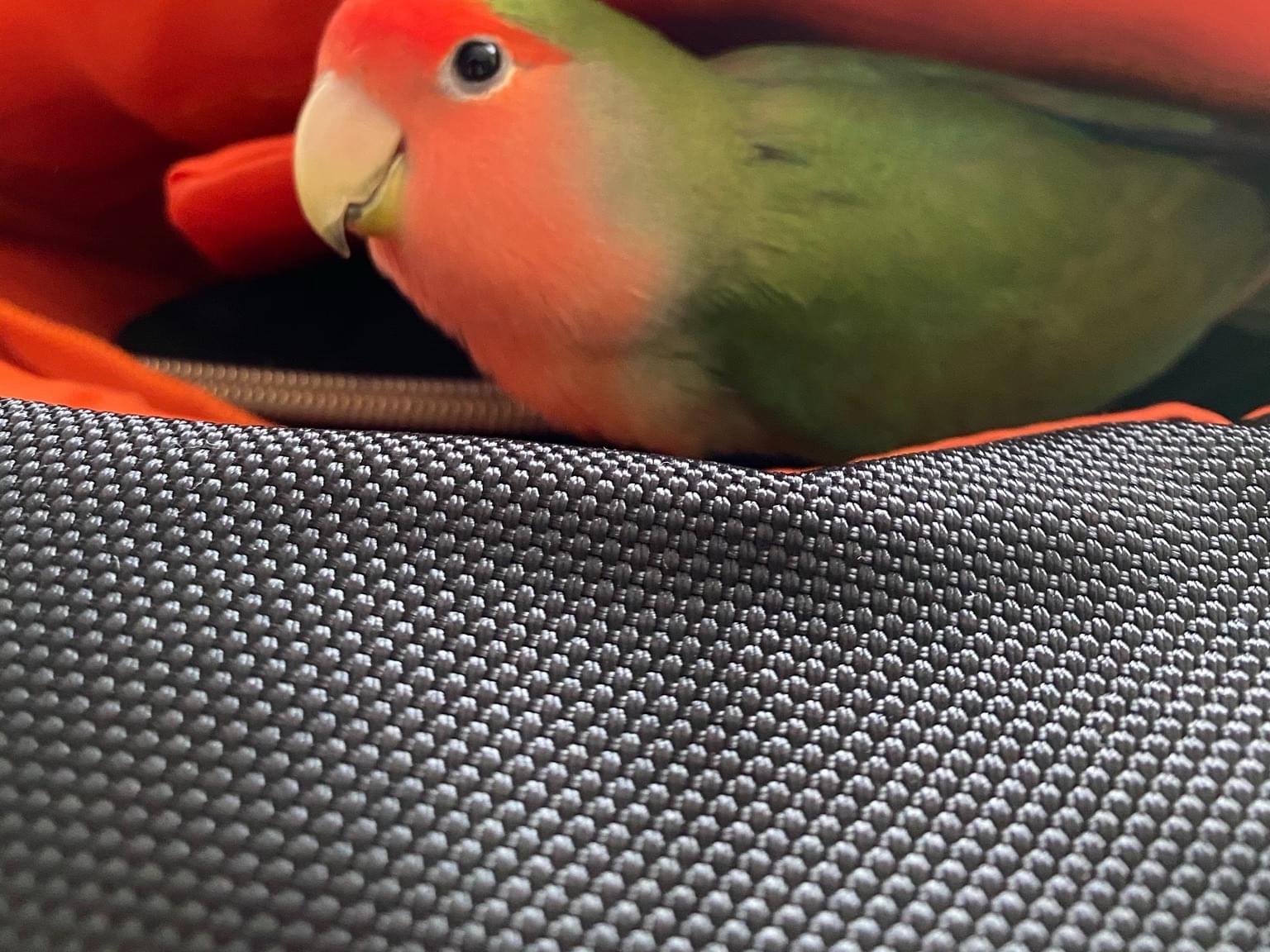 12/20の12:20頃、自宅窓から飛び出してしまいました。人懐っこく手、肩、頭に乗ります。羽根を切っていない為逃げてしまうかも。腕を大きく広げて鳥のポーズで近づくと固まって動きません。甲高い声です。