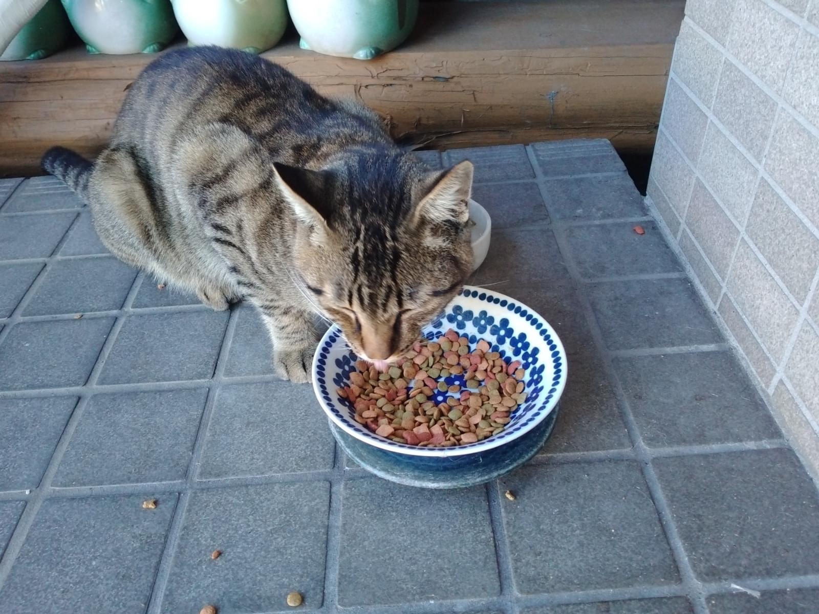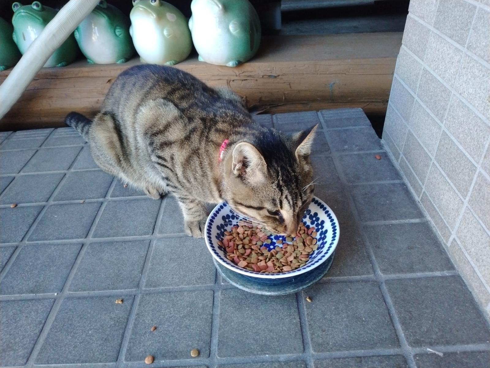 一週間位から前から家の玄関先 裏庭に現れるようになりました。餌もたべます。家猫がいるためうちの中には入れてやれませんがうちには簡易の猫小屋があるそこで過ごしているとおもいます。 追記 修正します。