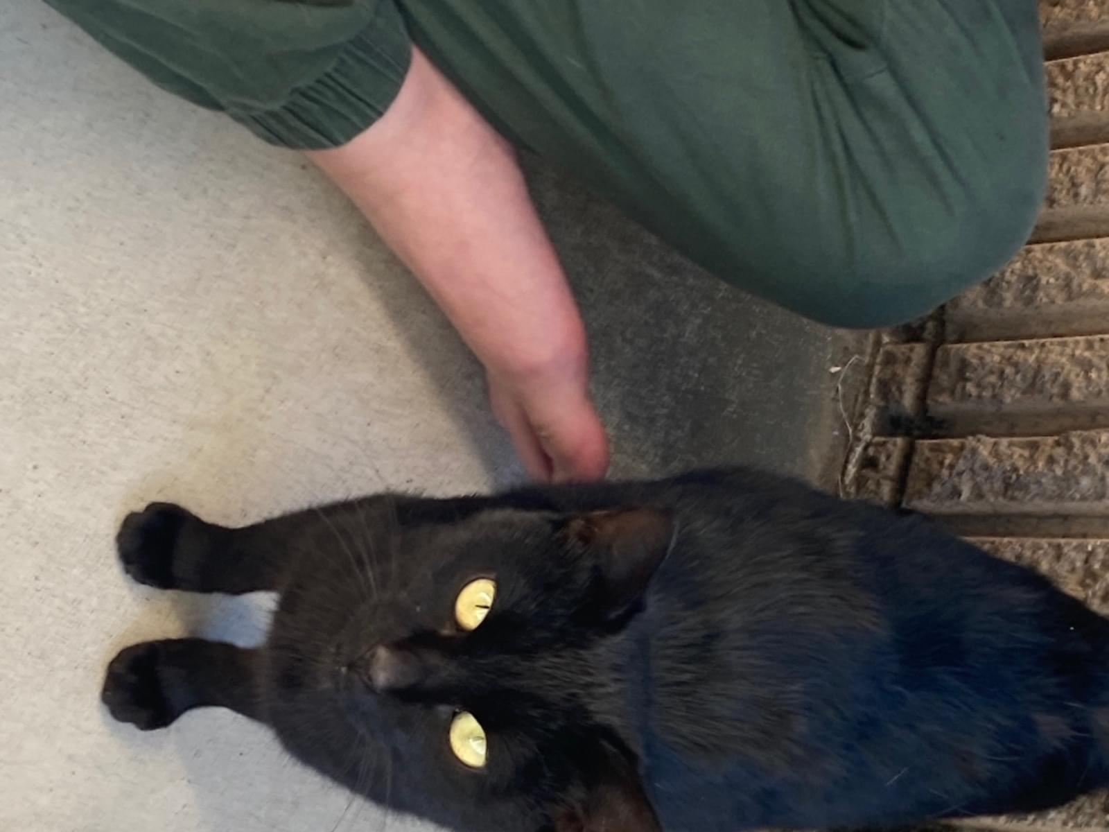 真っ黒で、よってきます。甘えん坊さんなかんじです。誰かに飼われてたのではと思い、探されてる方いらっしゃいましたら、ご連絡下さい。家の中には入ってこないのですが、ベランダにいます。我が家には犬が3匹いるためか、警戒はしてましはが、猫ちゃんはそこまで怖がってはない感じですよろしくお願いします。