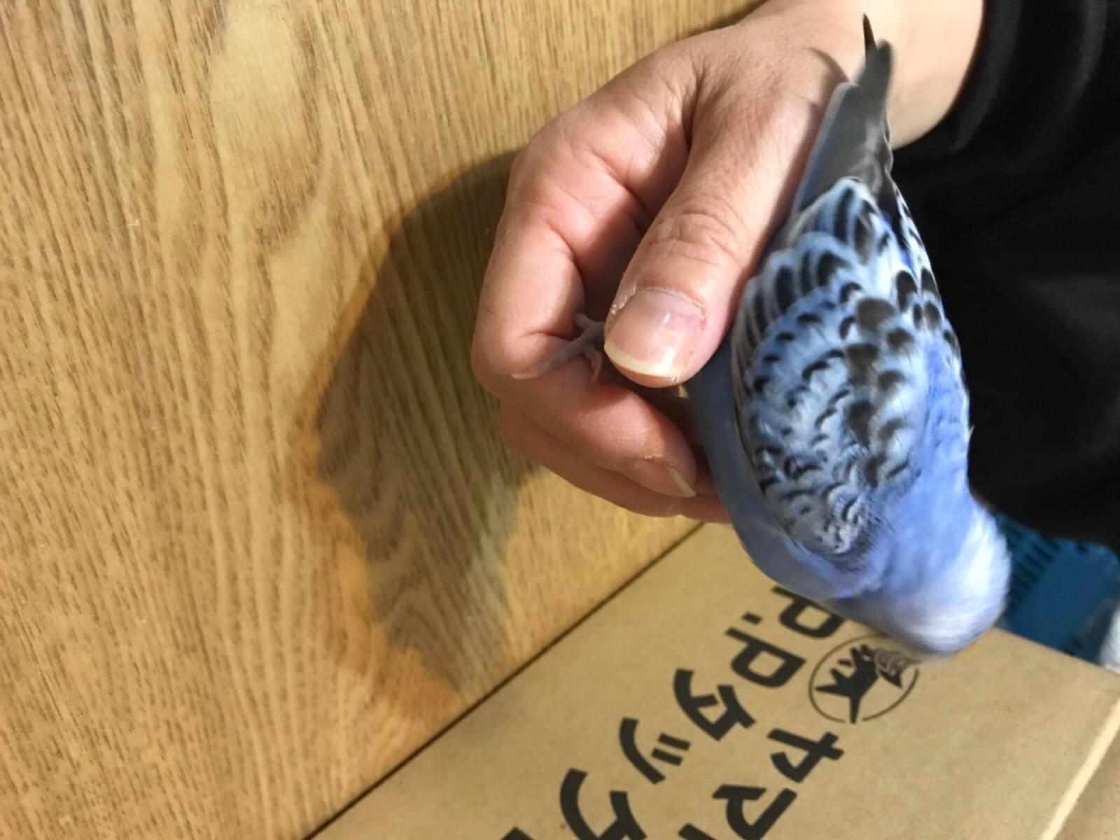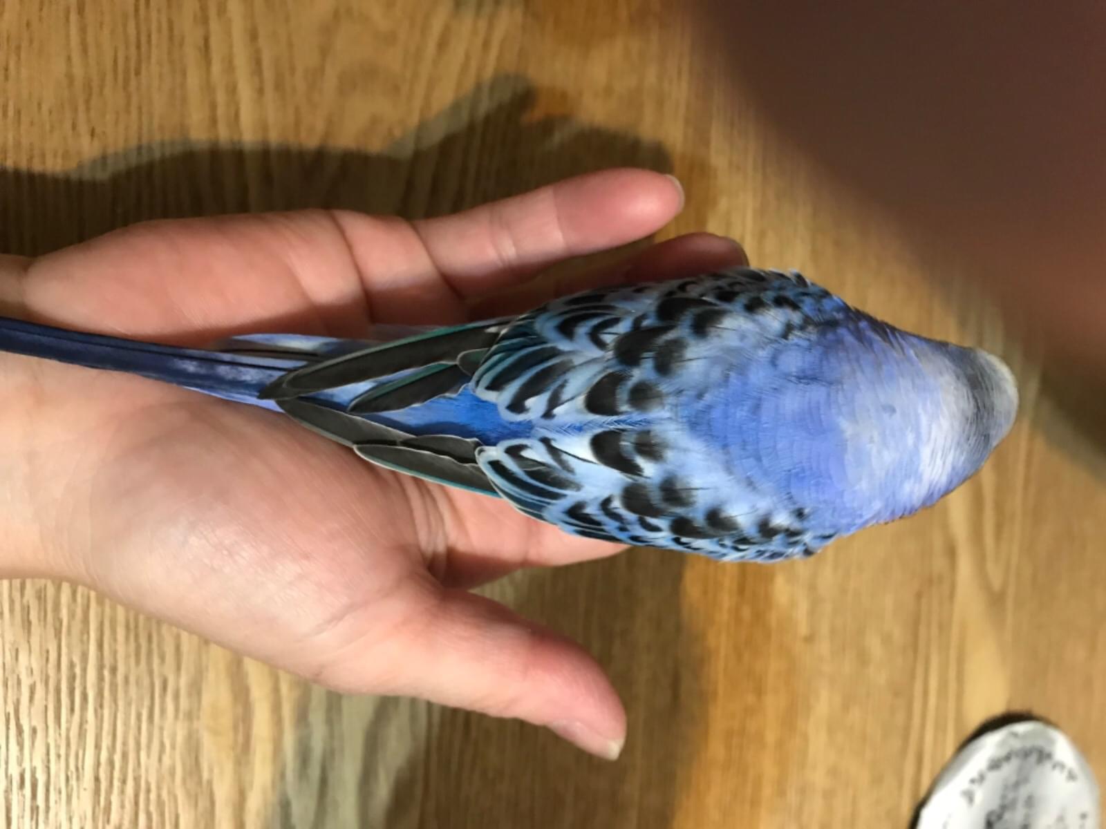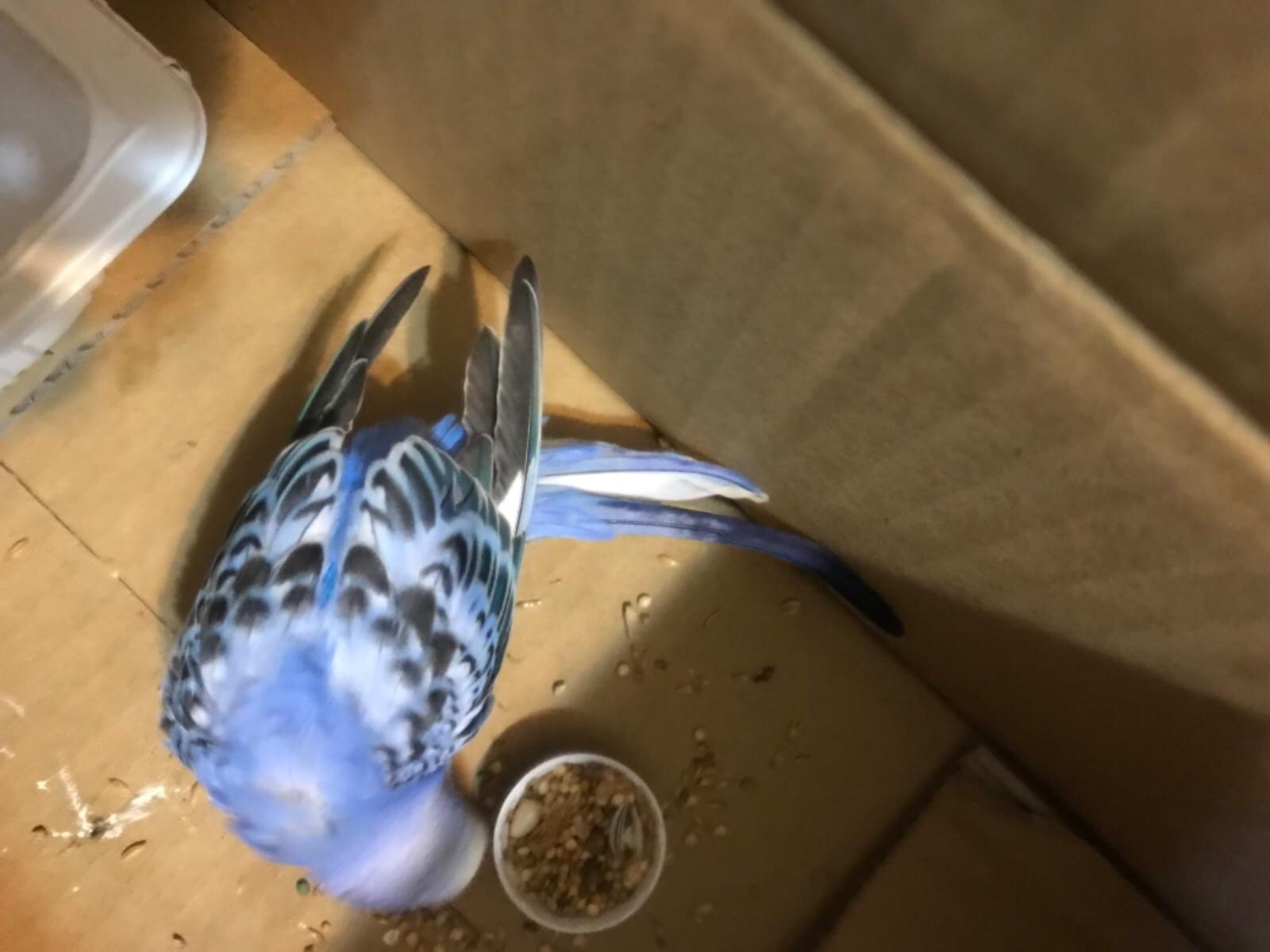 橋の上で地面におり、車がよく通るので轢かれてはいけないと思い保護させていただきました。青色の小さいセキセイインコで石津川にかかる橋の上で発見しました。あまり鳴かず、触っても抵抗はあまりありませんでした。