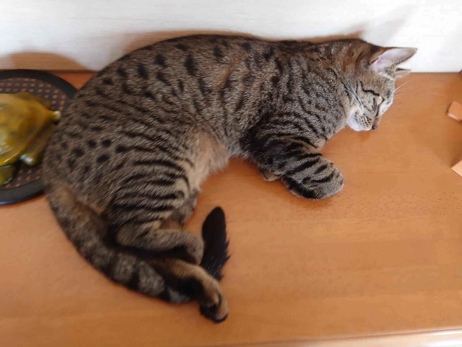 種類:雑種の茶色のキジトラ(胴体は水玉模様)