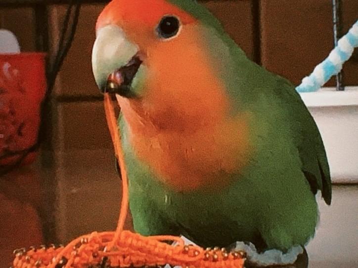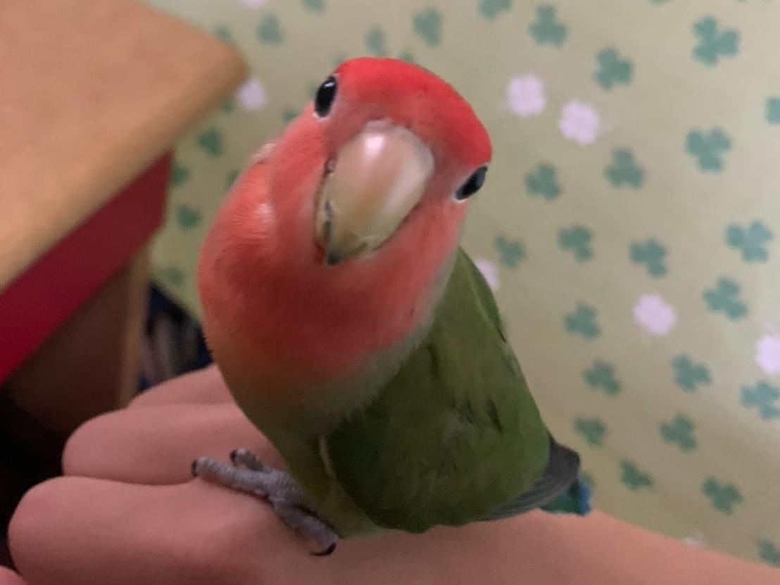 高い声で鳴きます。自分の名前(ことちゃん)と気まぐれで、おしゃべりします。