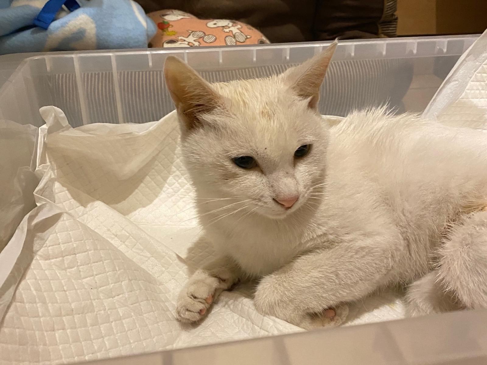 2021年10月30日柳川市田脇(柳川合同運輸付近)の畑で怪我をして動けないところを保護しました。病院にて処置済みです。食事をあげたところ次第に元気になってます。現在我が家にて保護していますが柴犬を飼っている為、長期の保護が難しいです。どなたかご存知の方はご連絡下さい。