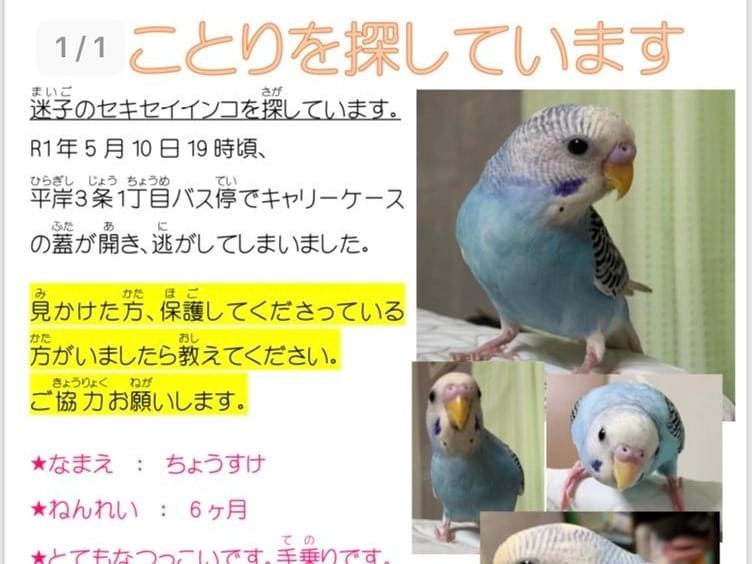 青と白の「ちょうすけ」と喋るセキセイインコを探してます