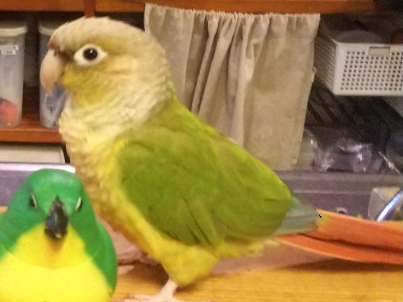 10月24日㈰16時ごろ、自宅から行方不明になりました。顔や胸はベージュ、羽は緑、尾は赤とカラフルな中型インコです。「アキちゃんおいで」「うんちプリ」などお喋りします。人慣れしてるので、名前を呼ぶと肩や頭に乗ってくるかもしれません。何か情報がありましたらどうぞ宜しくお願い申し上げます。