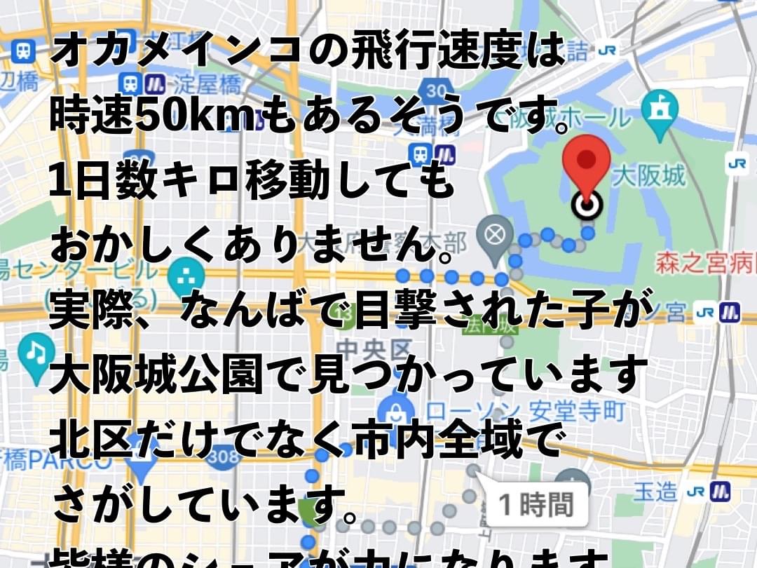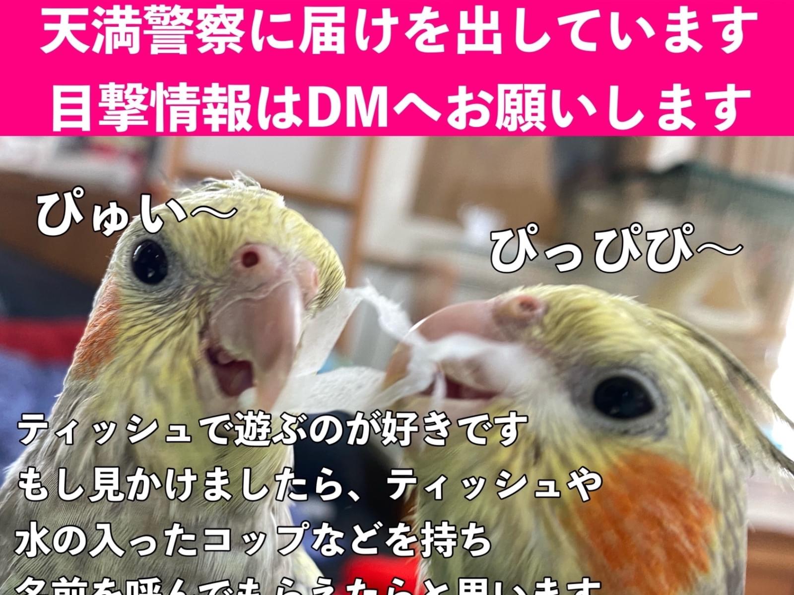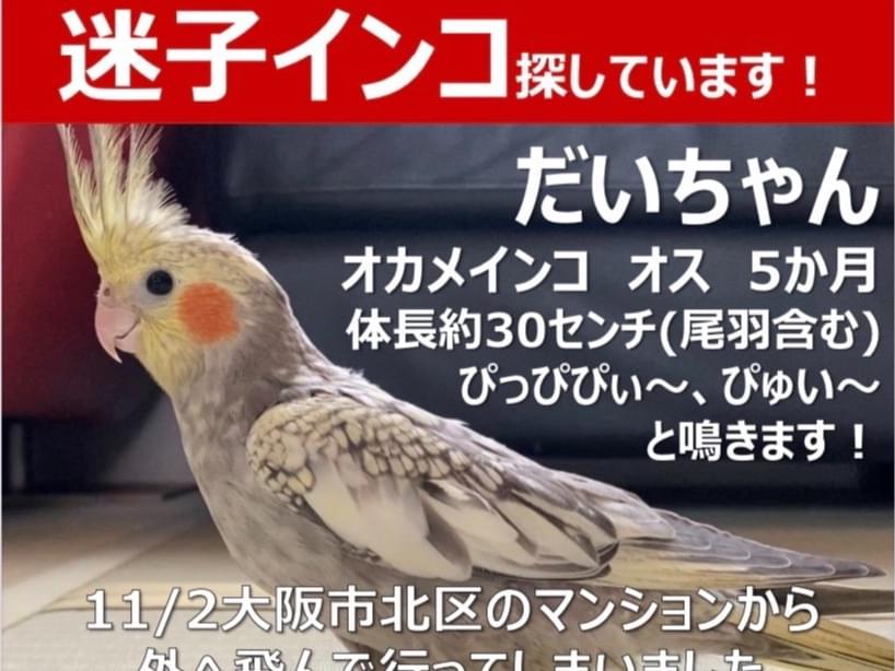 11/2大阪市北区のマンションからオカメインコが外へ出てしまい