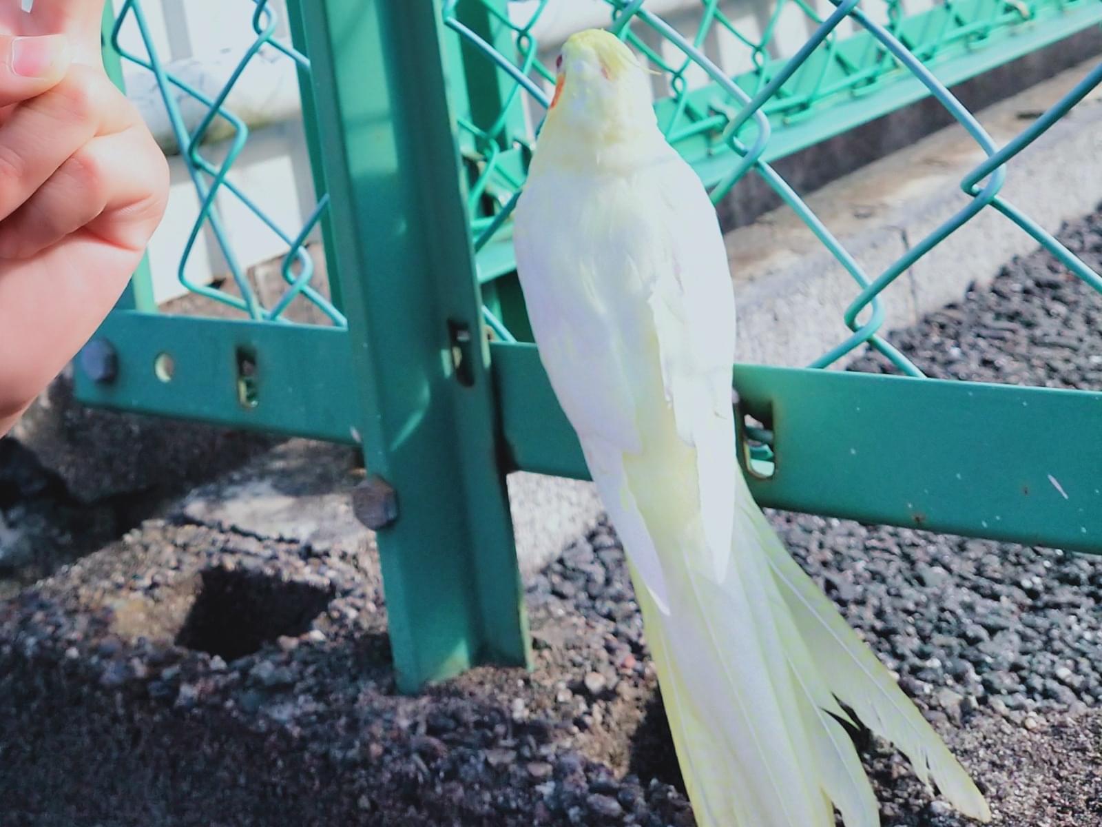 子供は外でオカメインコと一緒に遊んで油断して、飛びました、探している中ですので、インコの様子が頭の上に毛がなかったんです、よろしくお願いします