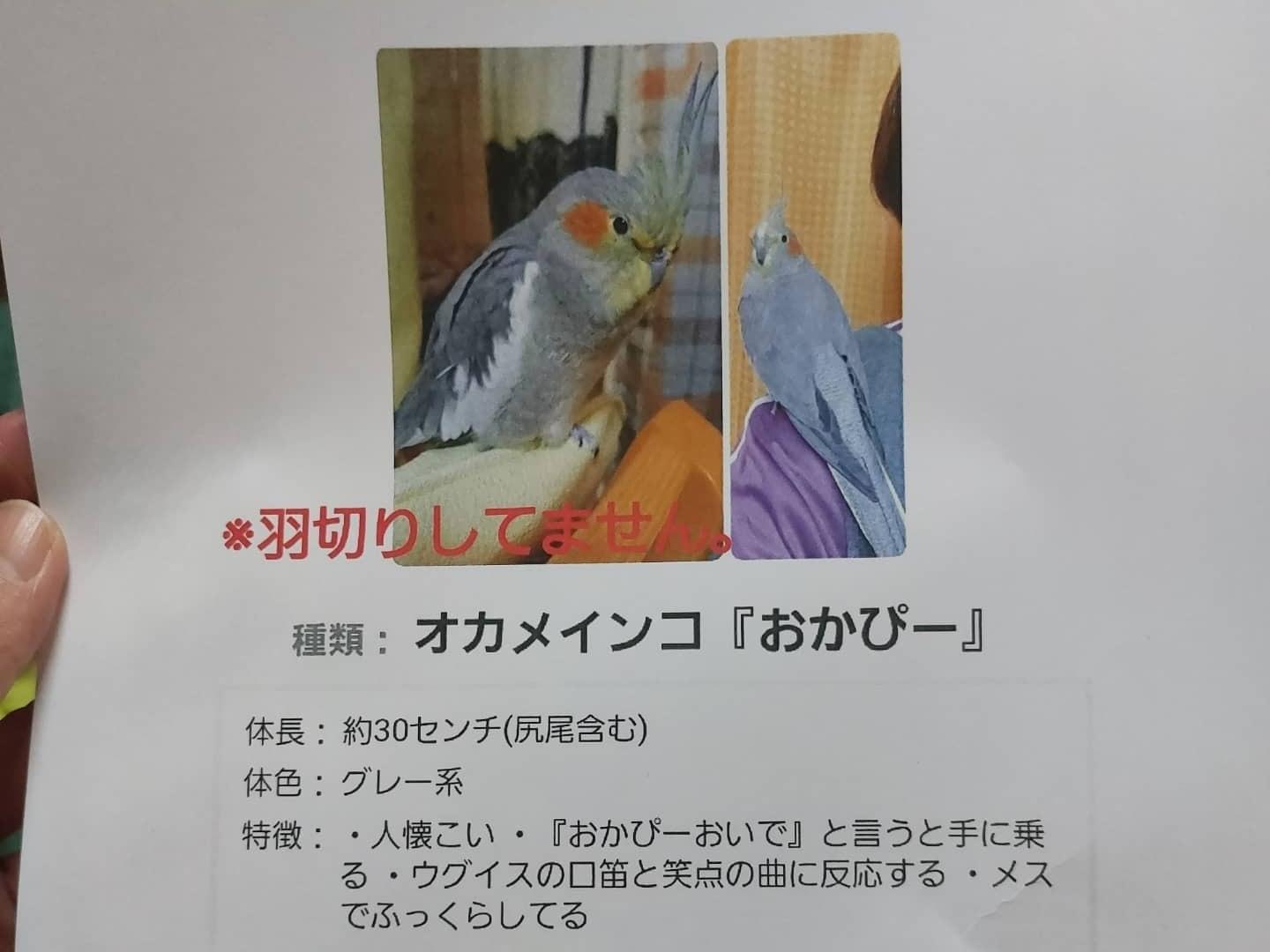 2021年11月3日の午前8時頃、自宅からオカメインコが逃げてしまいました。