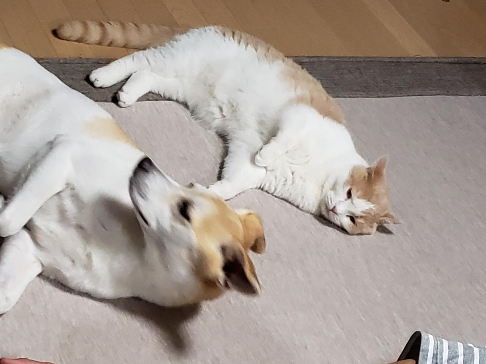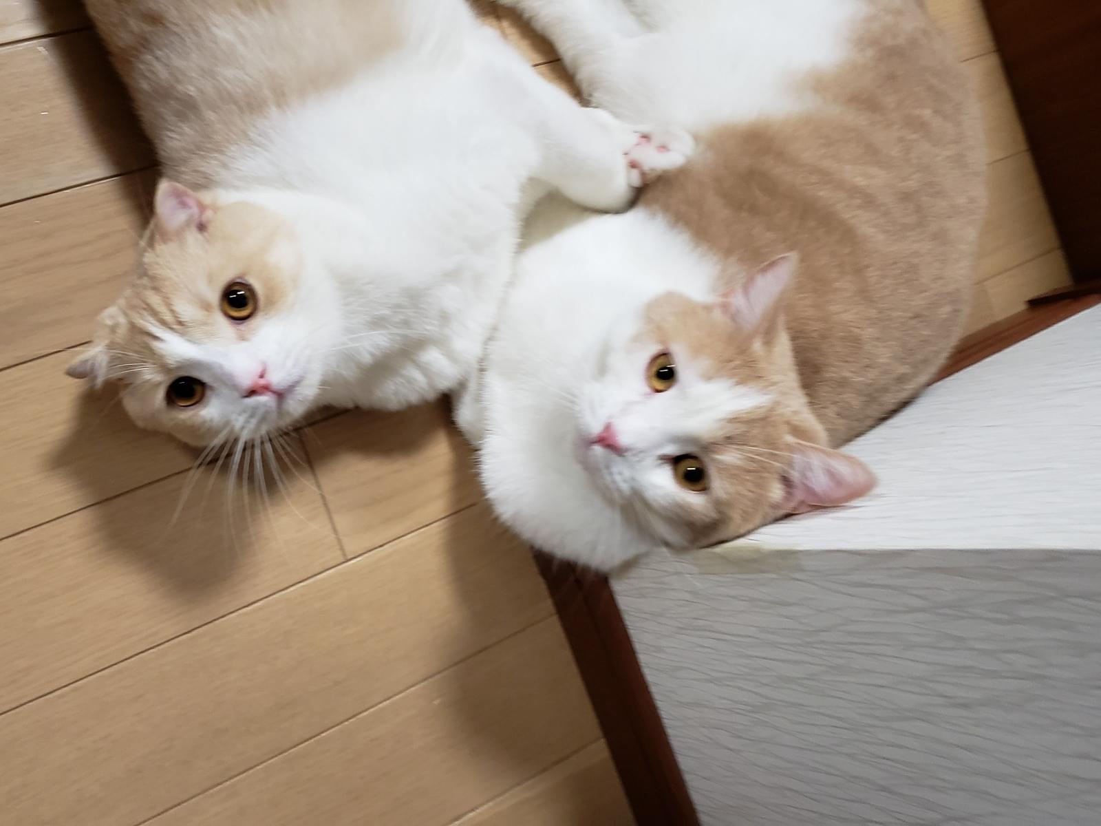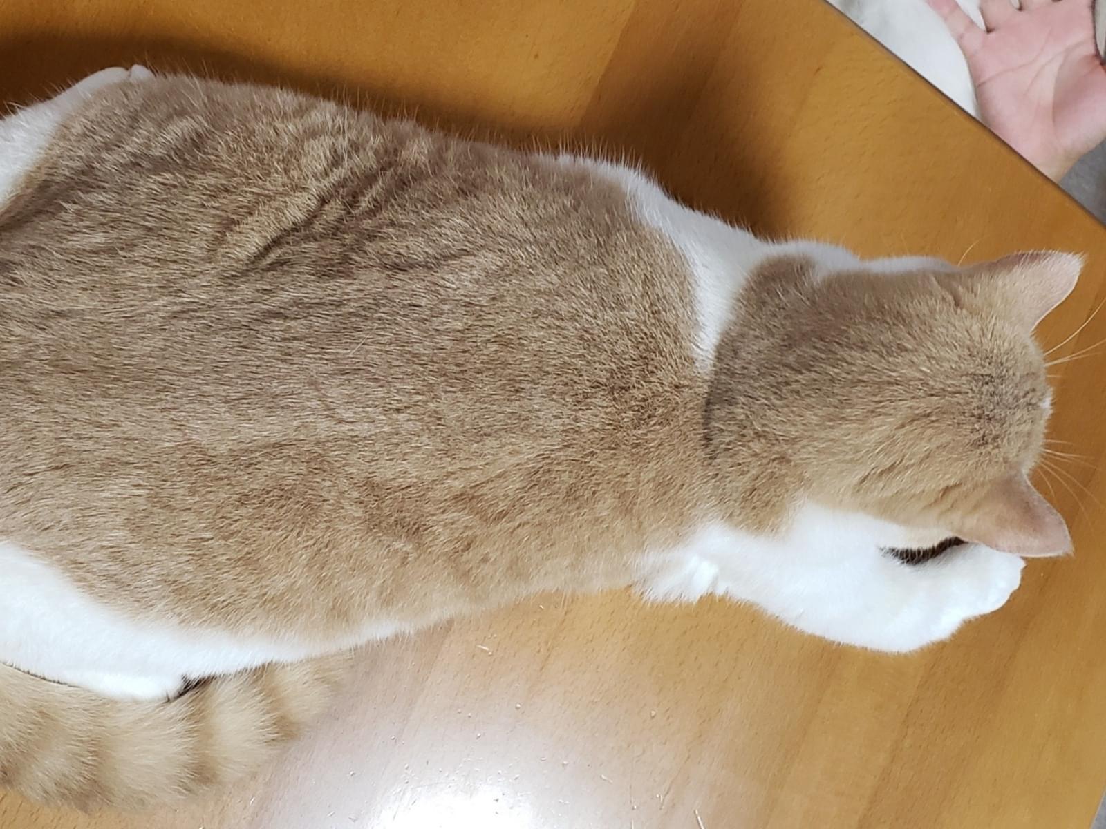 右前足が短いため、歩く時にびっこ(右肩を落として)になります。背中はおうど色に近い茶色で前から見ると白が多い猫です。5キロほどあるので少しポチャです。