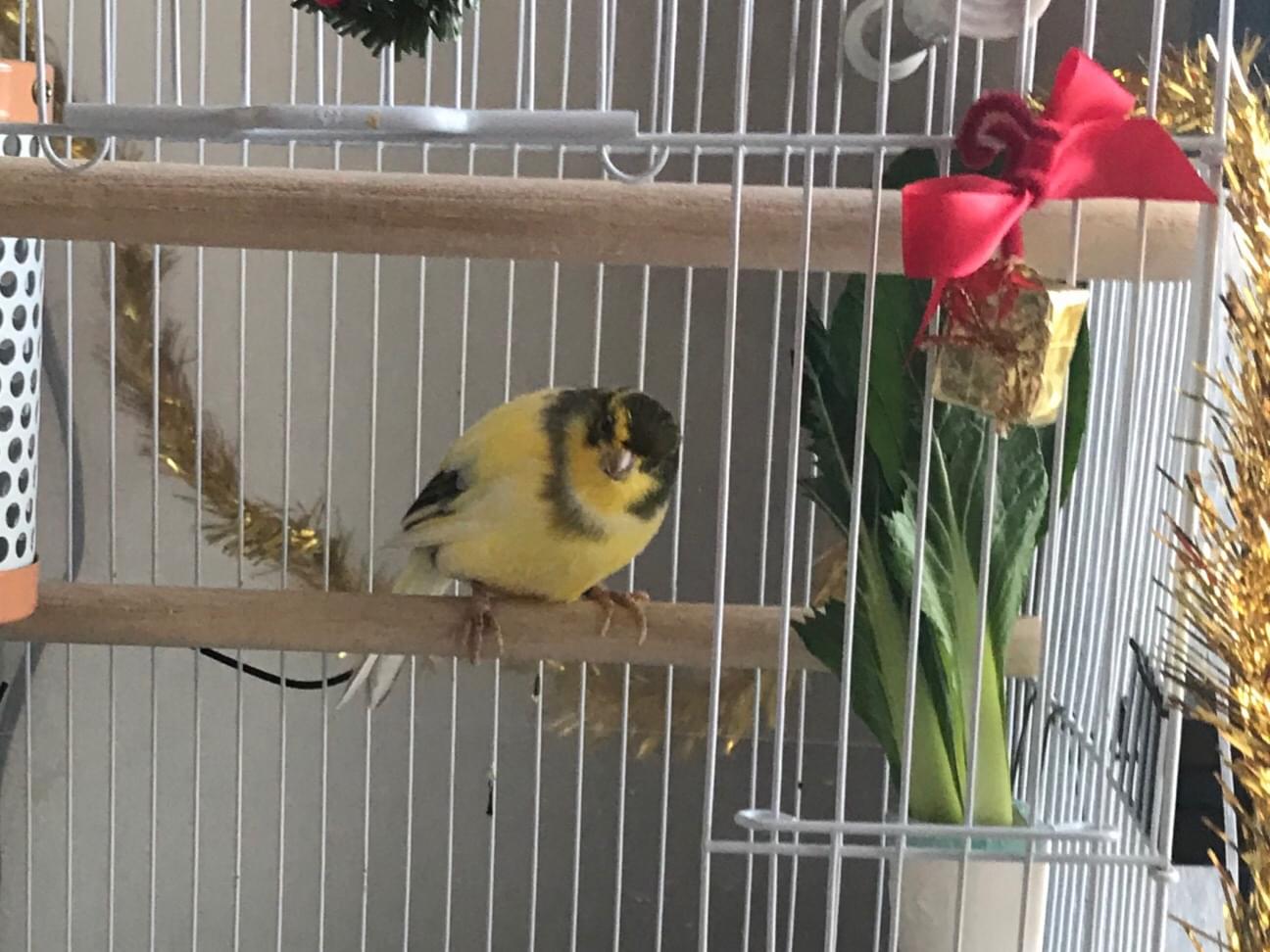 左足に青いリングが付いています。あまり鳴かないです。体長は15㎝弱ほどです。