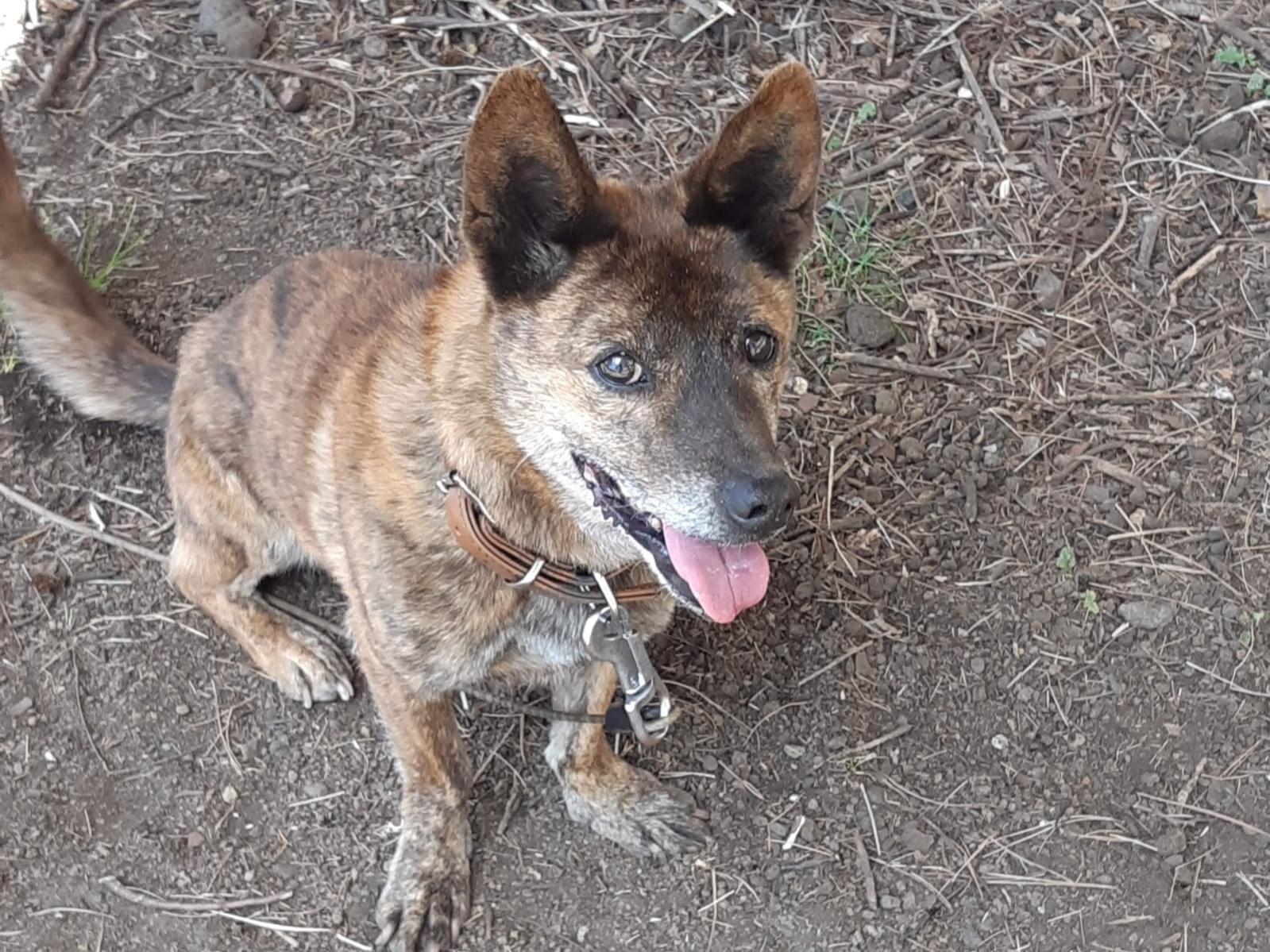 パッと見は甲斐犬ですが、何となく不格好(胴長)なので、何犬かなぁ?と目を引きます。