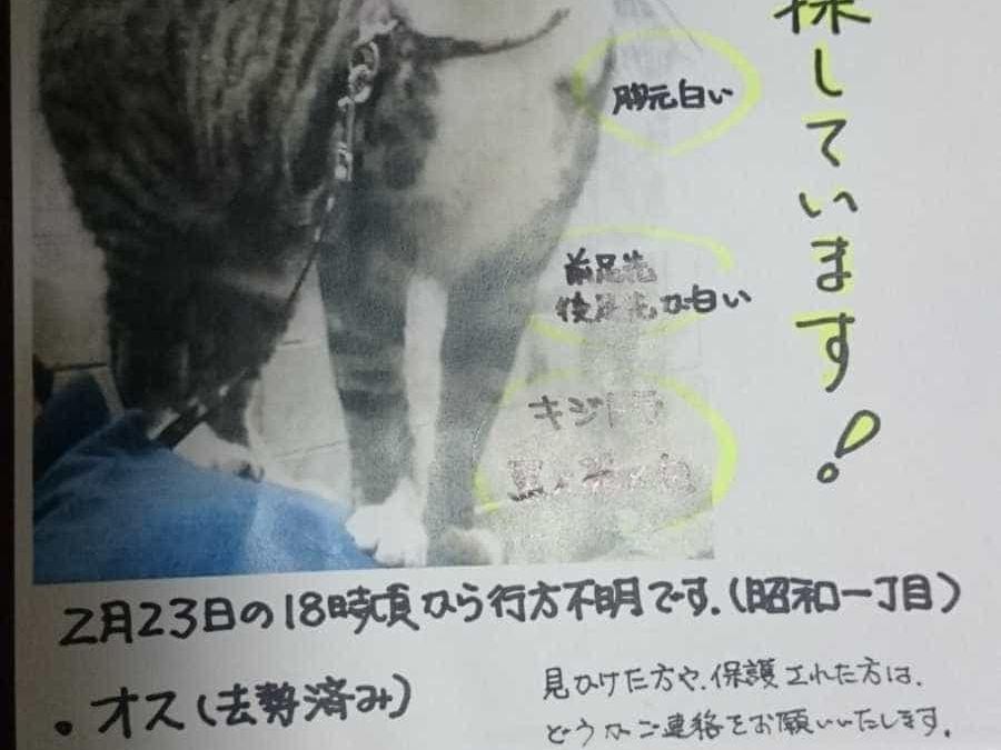 2018年2月23日、福島県 郡山市昭和1丁目で猫が迷子になりました。