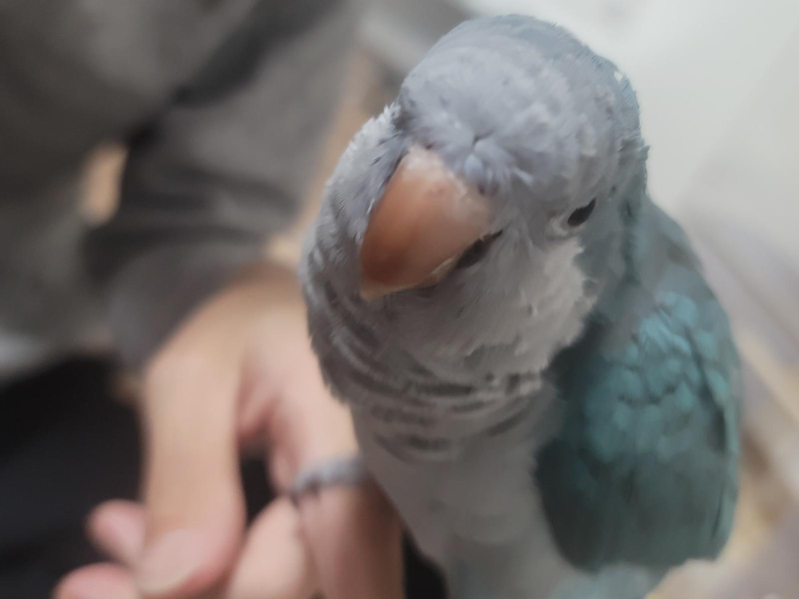 オキナインコのブルーです。声はあまり大きくありません。性格は甘えん坊でよく懐いています。足輪はありません。