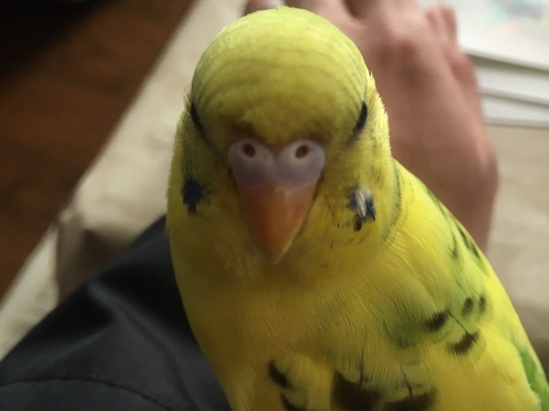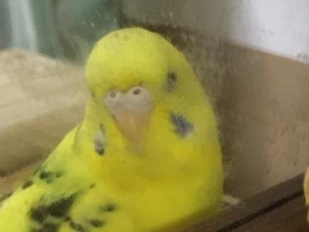 すこしぽっちゃりしたメスのセキセイインコです。