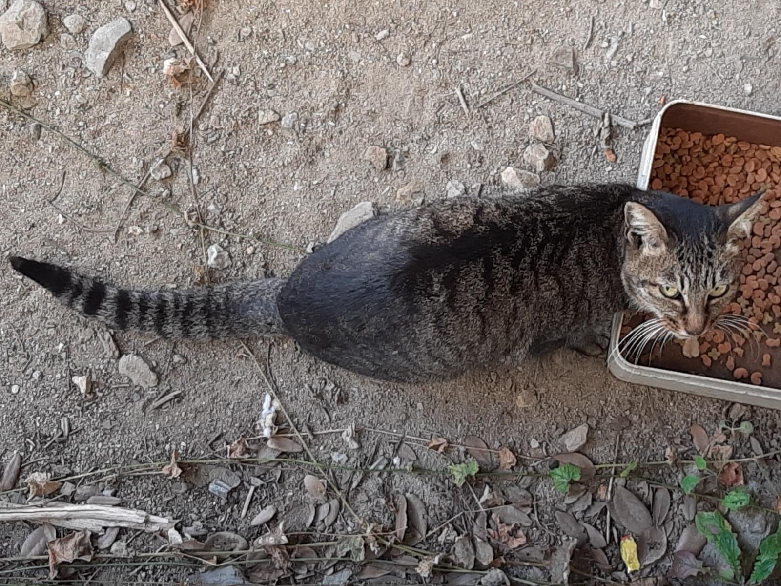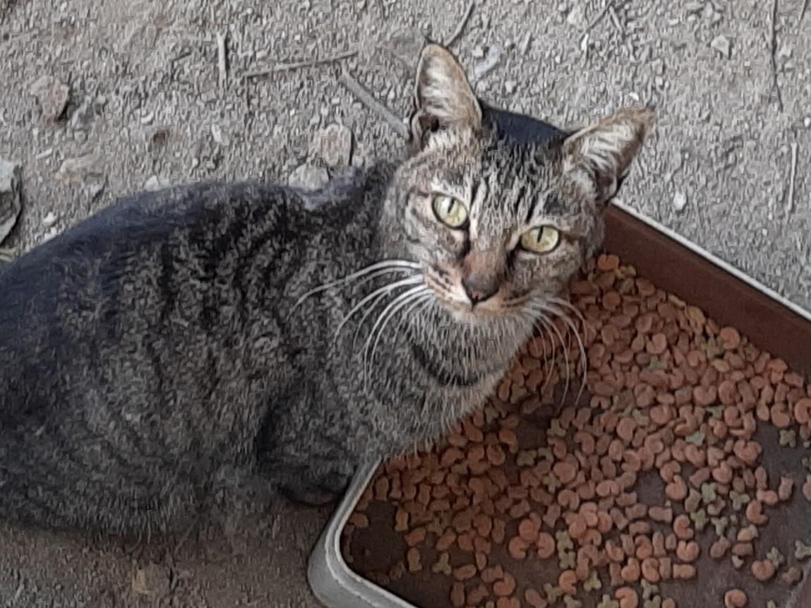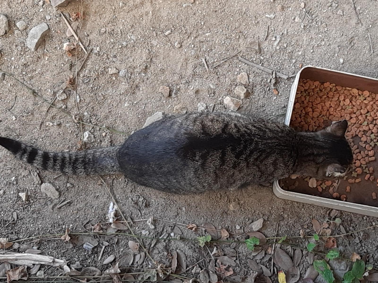 人慣れしているキジトラちゃんが餌を食べに来ました。