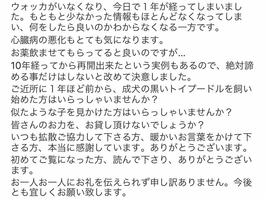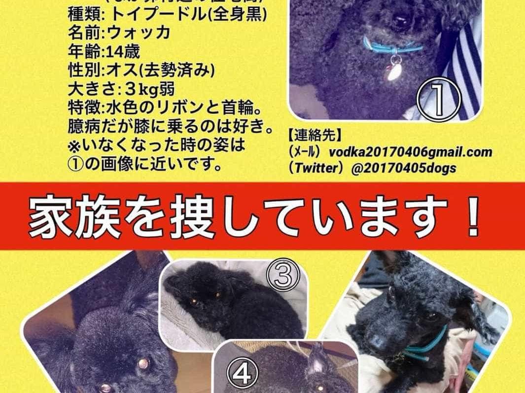 似た犬を保護、目撃した方、拾って飼っている方は情報をお寄せ下さい。
