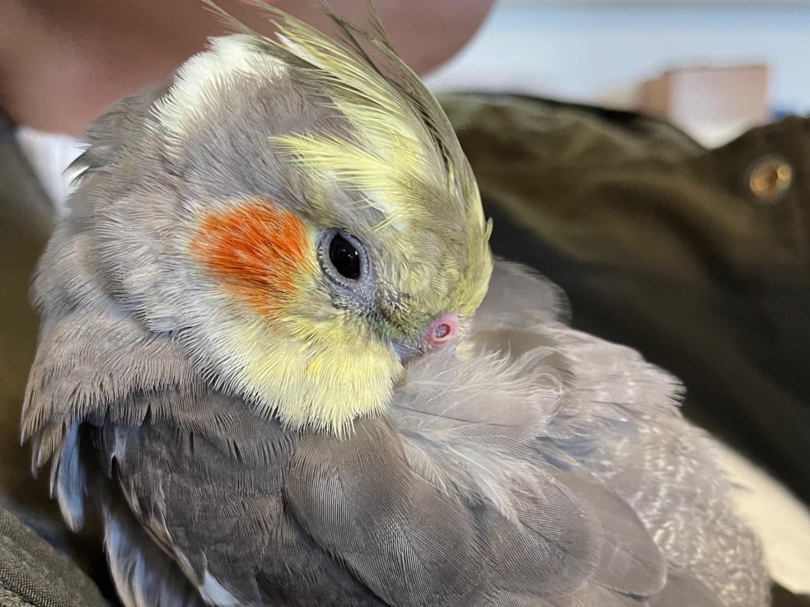 ほっぺが赤く、顔は黄色、身体は灰色と白が混じっています。野犬や猫などに襲われる可能性があります。人懐っこく、野生で生きることは厳しいです。見かけた方や保護されている方がおりましたら、最寄りの交番か警察署までご連絡をよろしくお願いします。