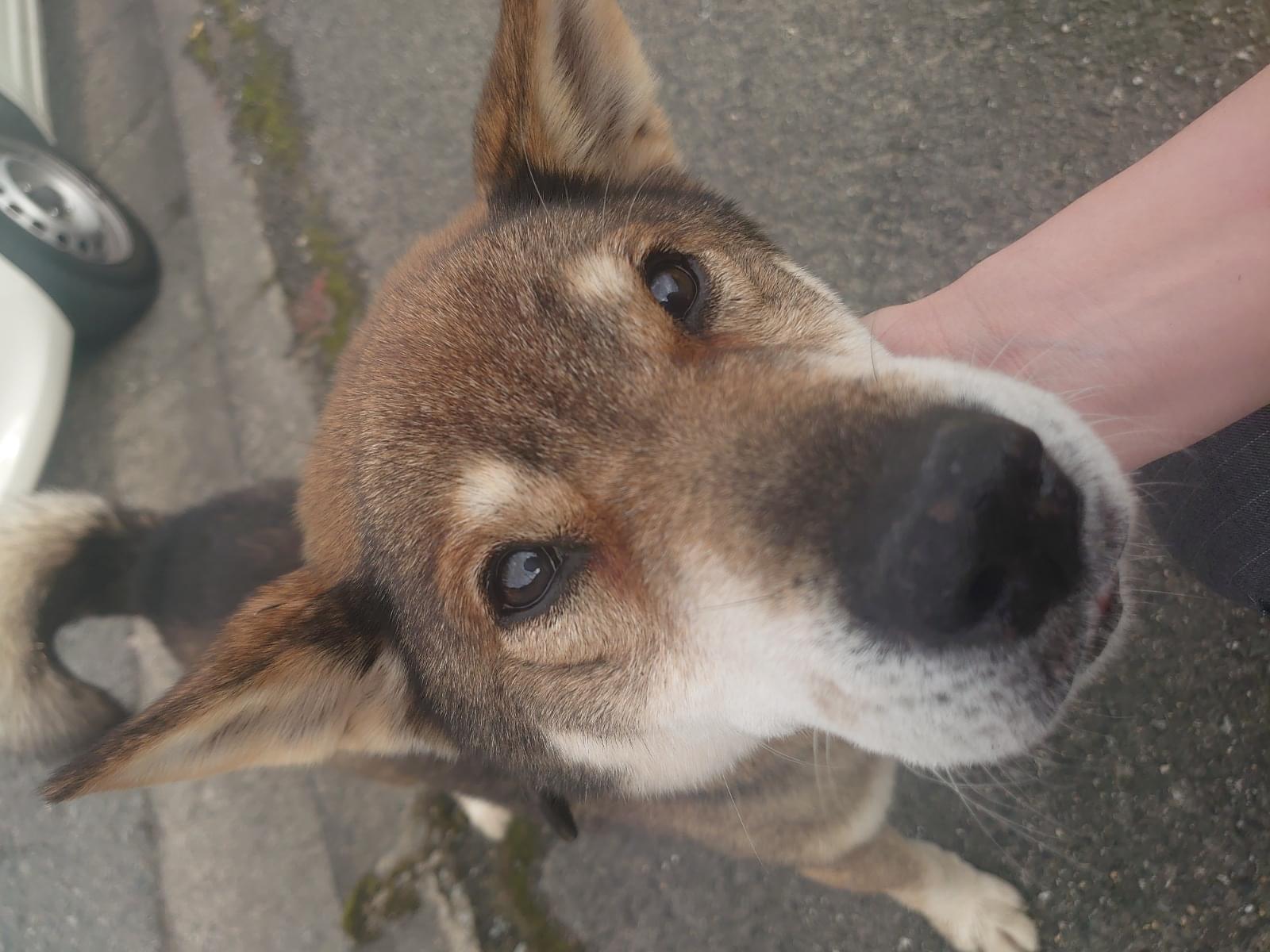 古びた青い首輪をつけていましたが鑑札や迷子札はありません。人慣れしています。