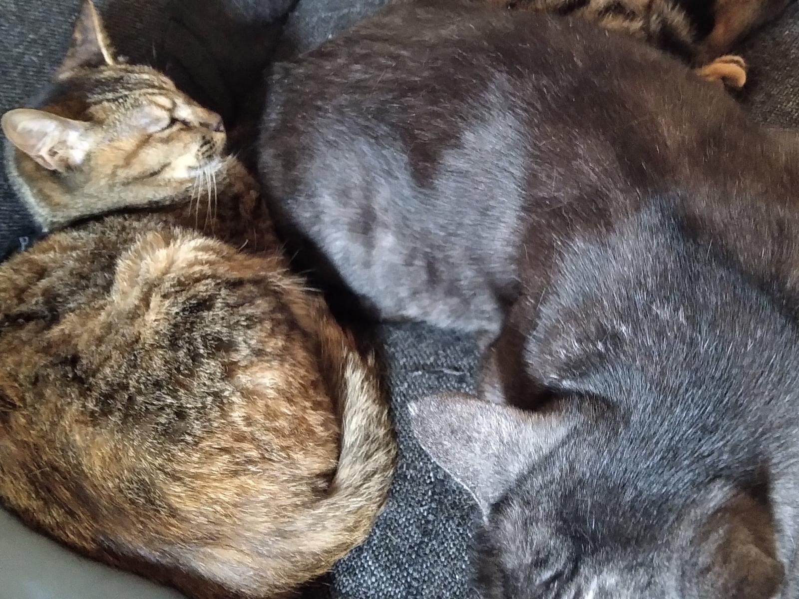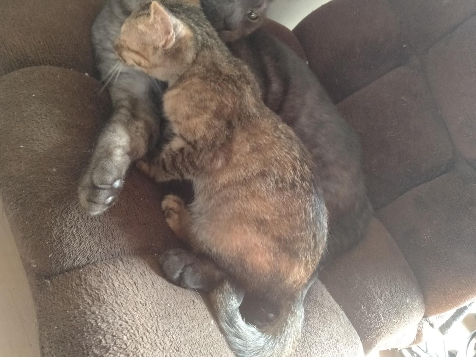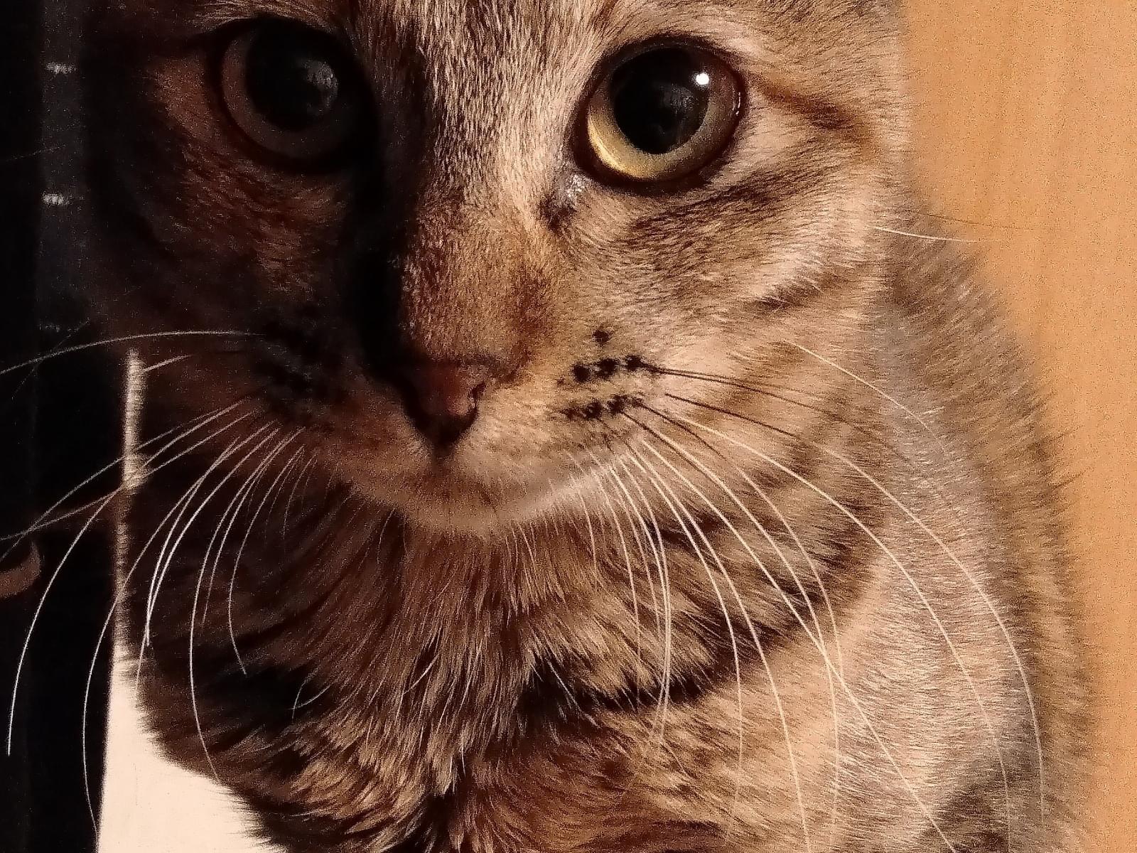 全体的にうっすらトラ模様、上から見るとサビ猫のようにも見えます。