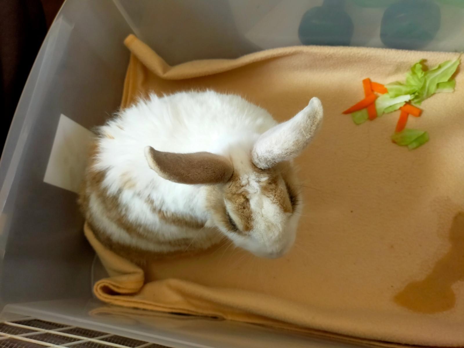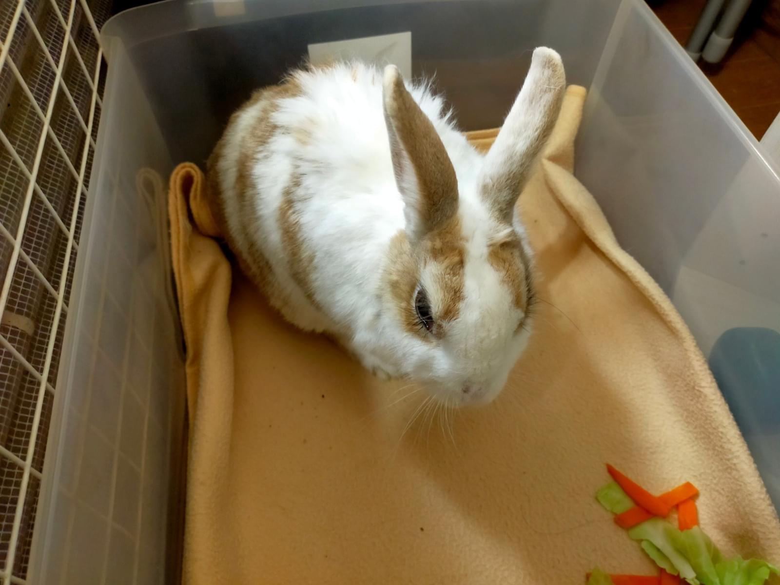 2021/12/11 6:10ごろ愛知県豊川市八幡町上宿交差点付近で父親が迷いうさぎを保護しました。