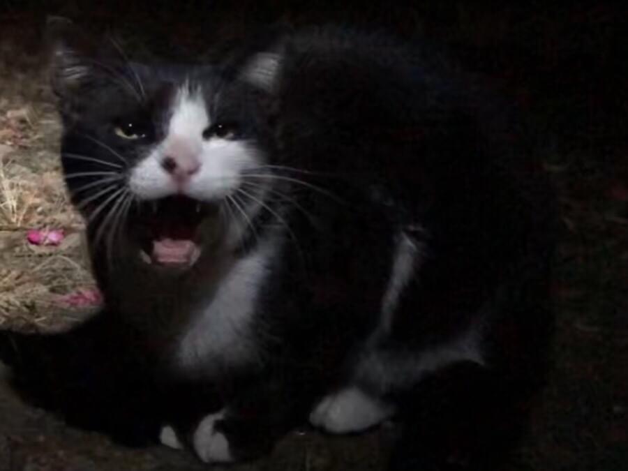 迷い猫なのか分かりませんが、人が通ると大声で鳴きながら走り寄っていきます。
