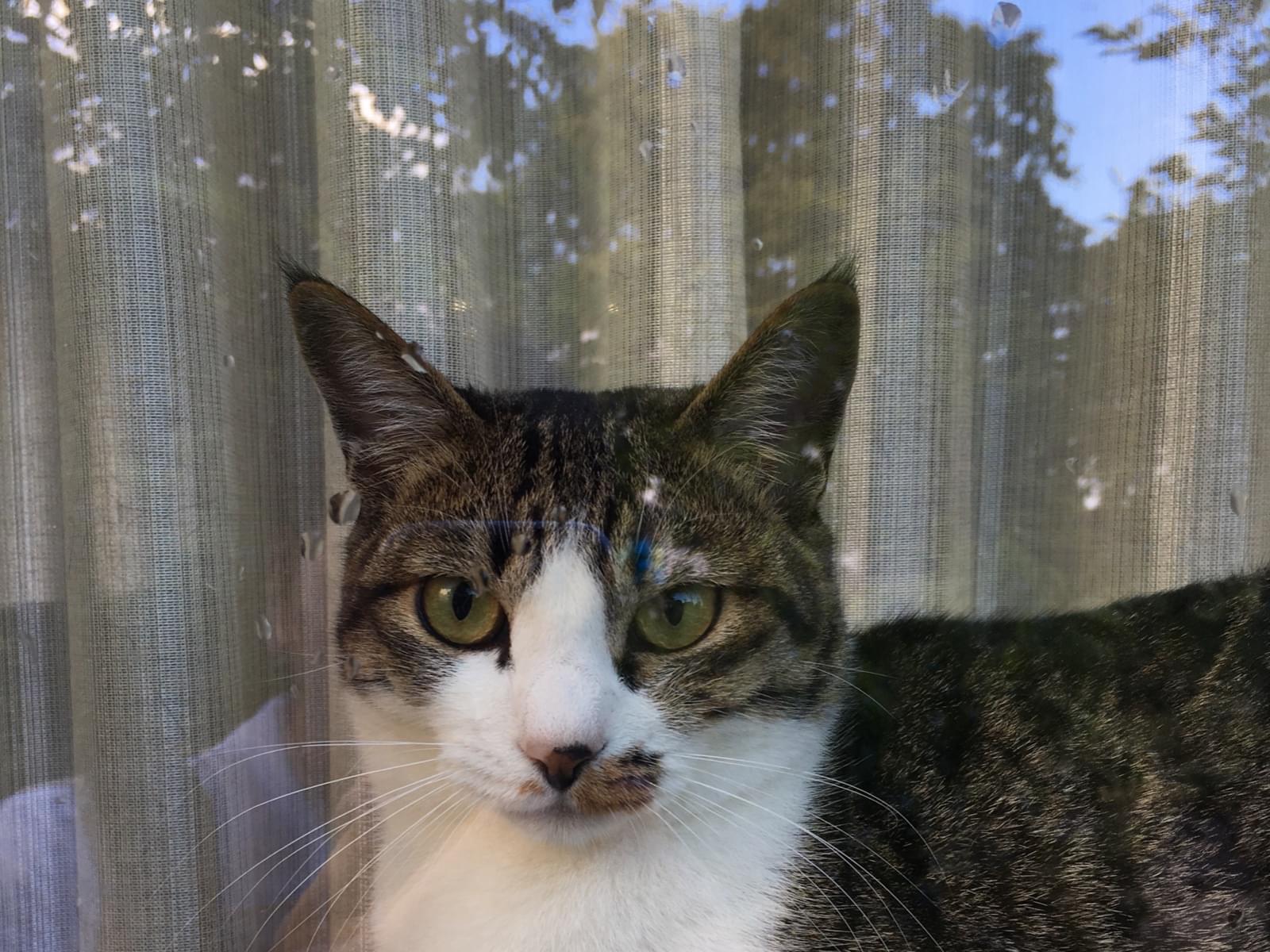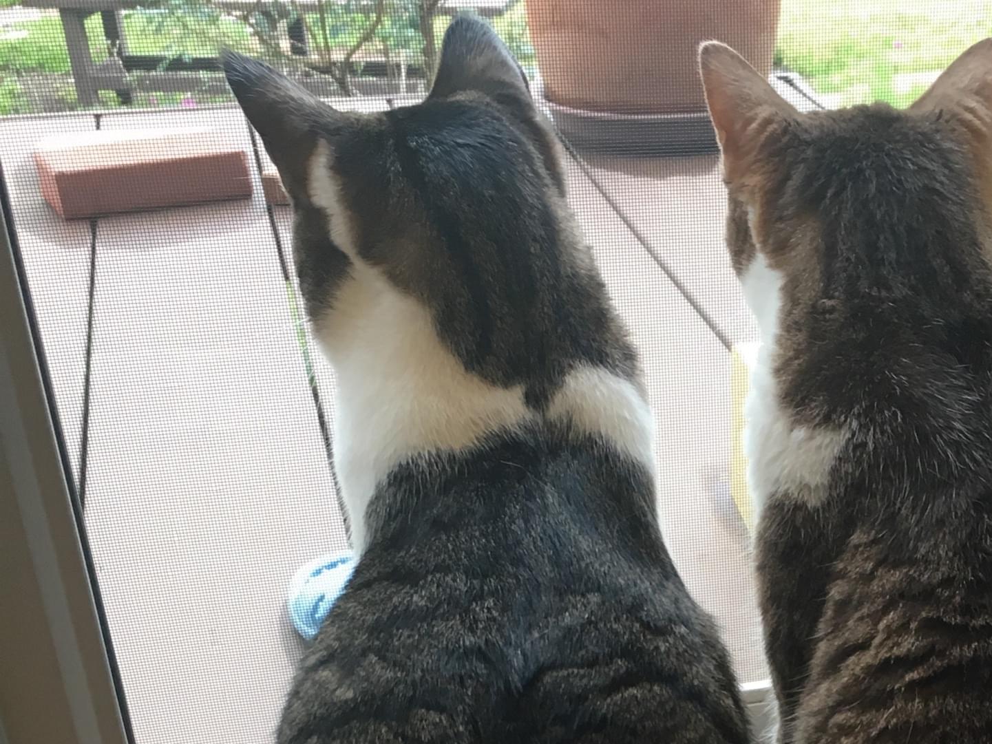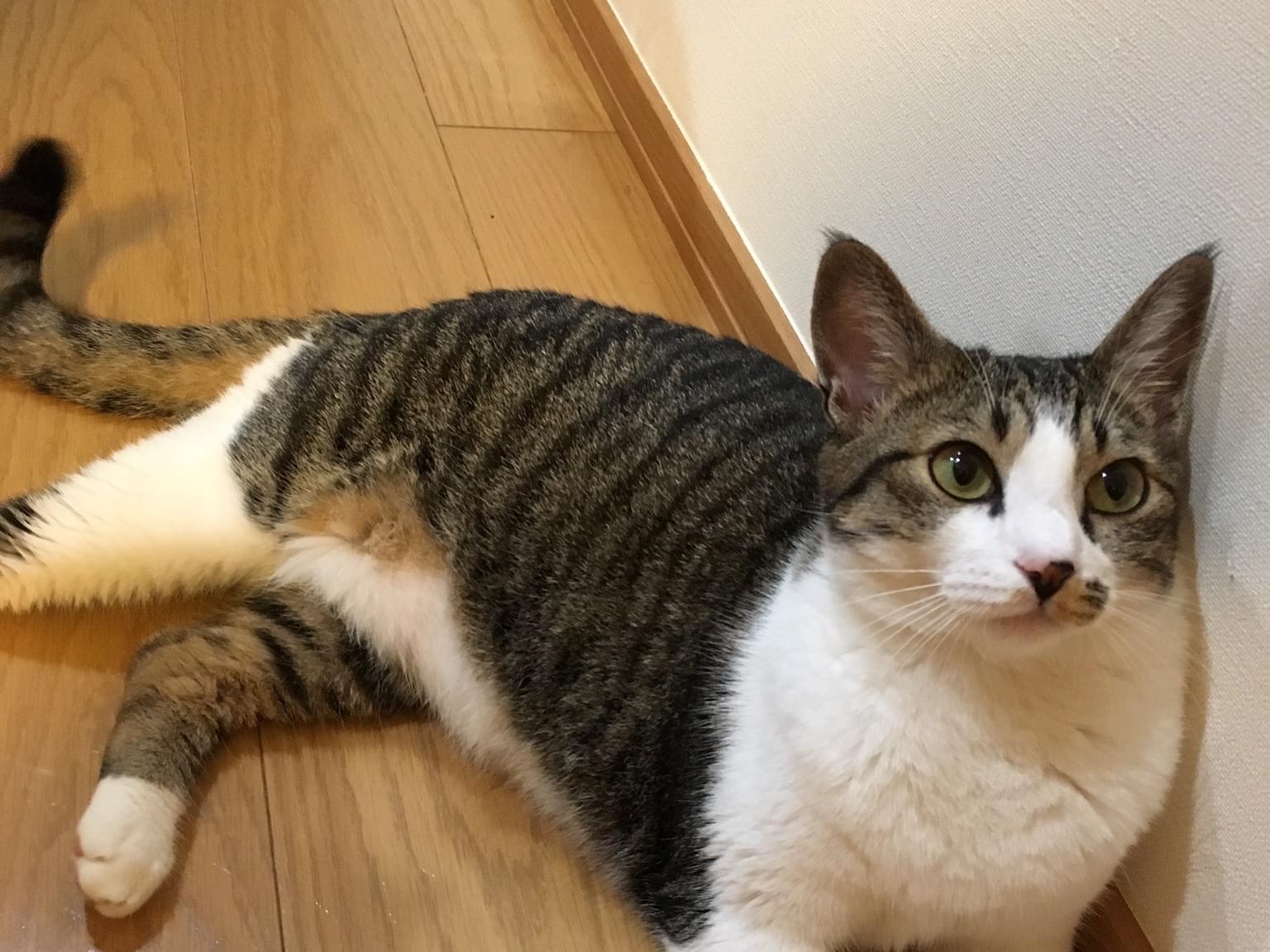 上から見たときに首から背中にかけて黒い模様が細くつながっています