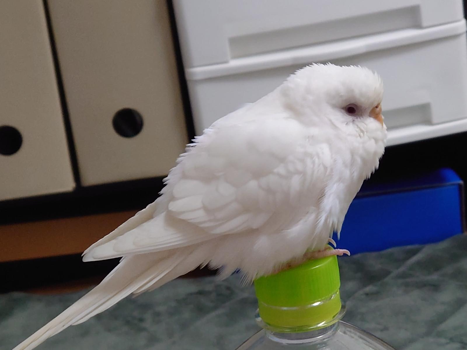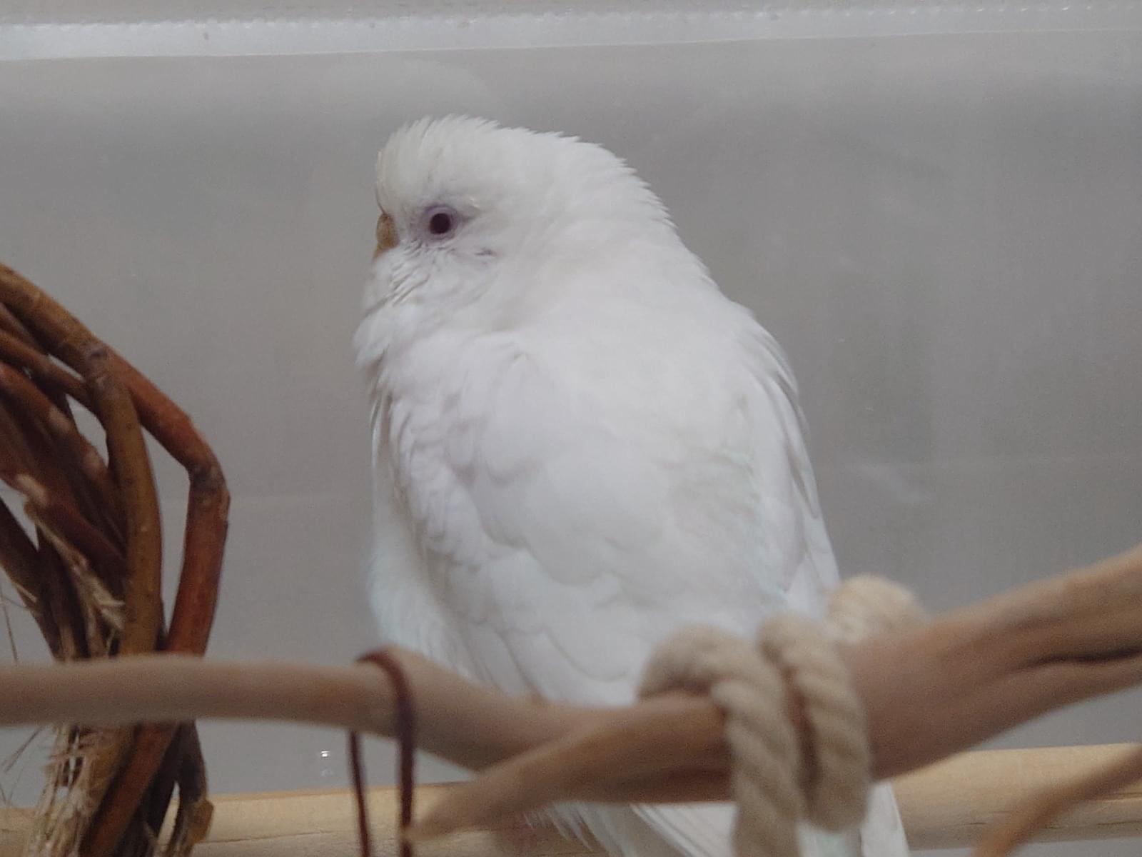 全身白色 赤い目、ろう膜は茶色、羽切り未実施