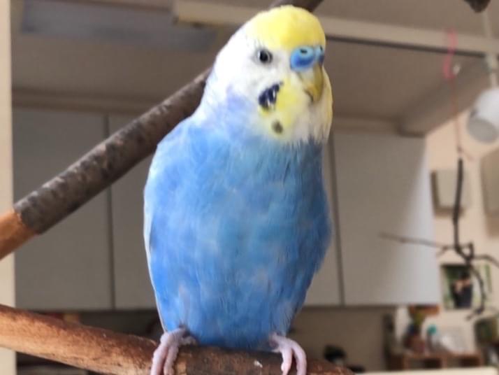 身体全体は、水色で頭と顔の一部は黄色、鼻は青色です。人に慣れていて、ココちゃんと自分の名前をしゃべります。もし保護されている方がいれば連絡ください。