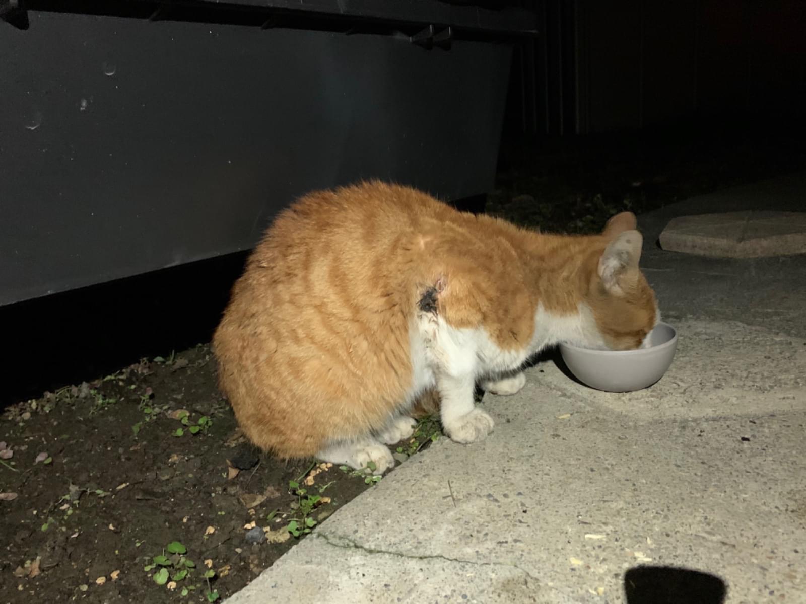 未去勢のオス猫。首輪のあとがうっすらとあり。