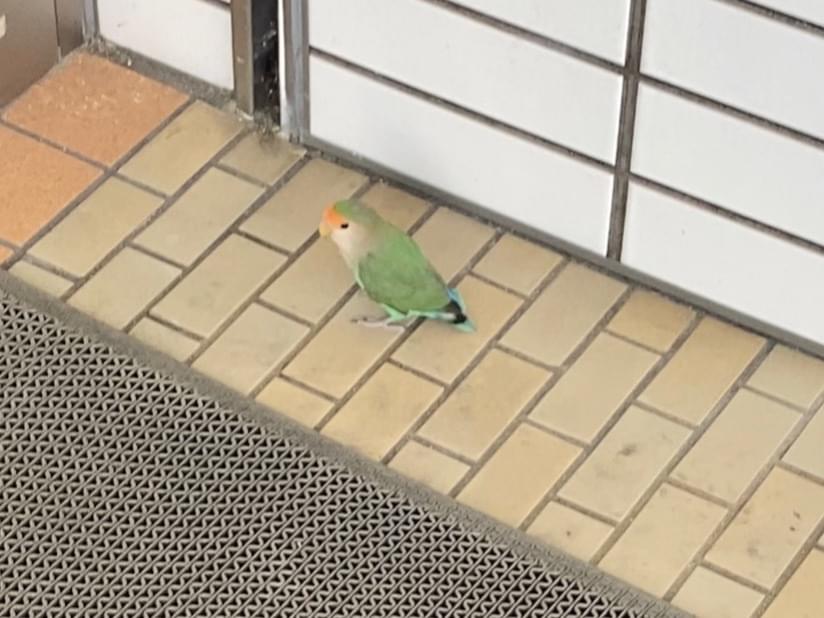 キレイな黄緑とオレンジ色がチャームポイントの小さめのインコ?でした。